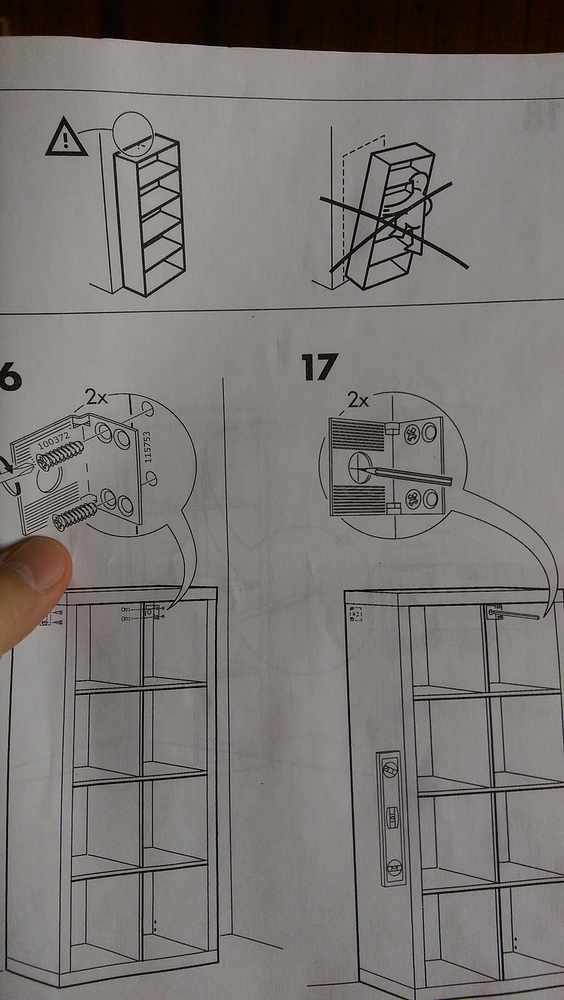 Этот чудик, у которого стеллаж завалился, просто поленился закрепить его прилагающимися средствами. На последние инструкция ПРЯМО указывает