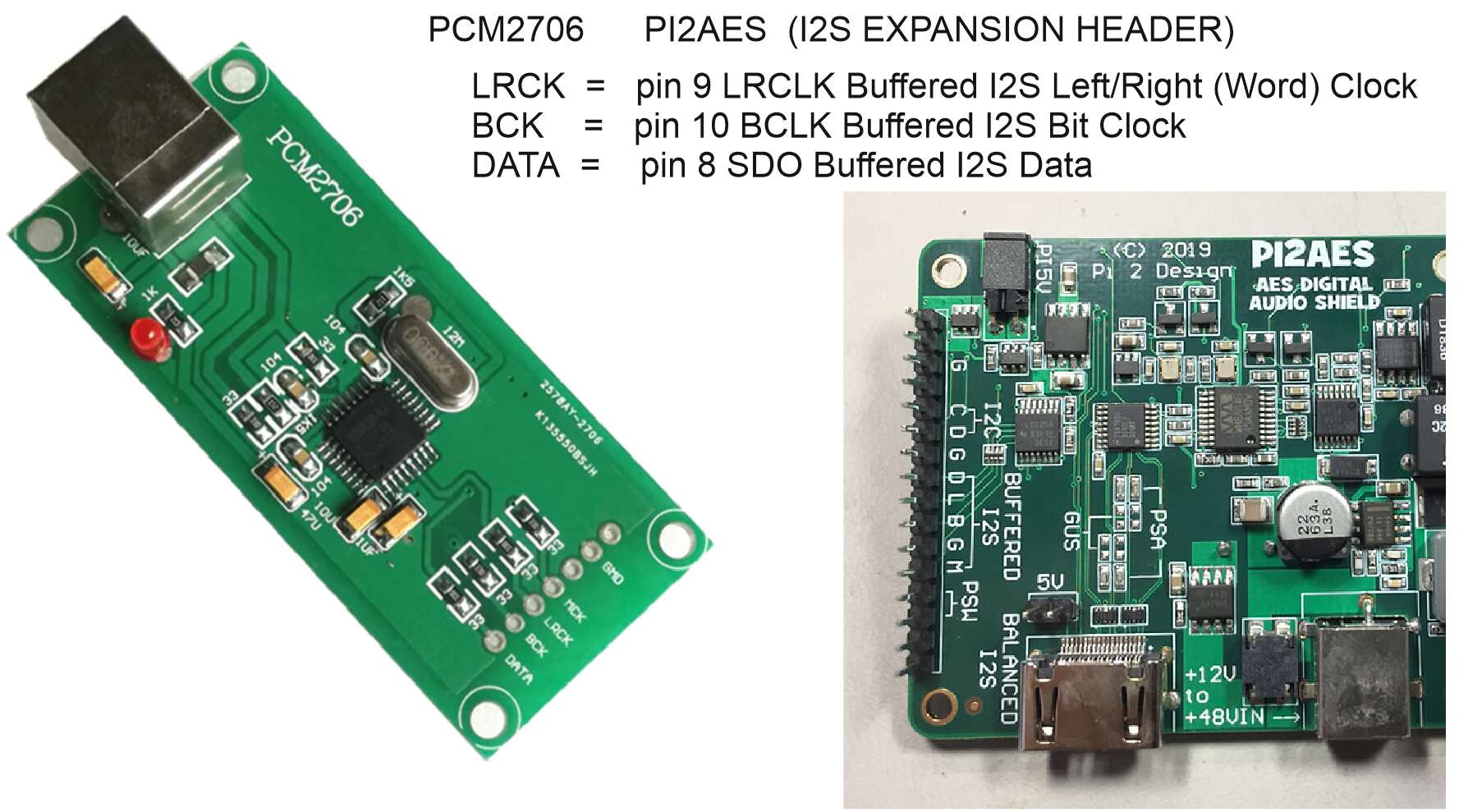 В него на прямую по 3 проводам + земля подается I2S с usb платы PCM2706.