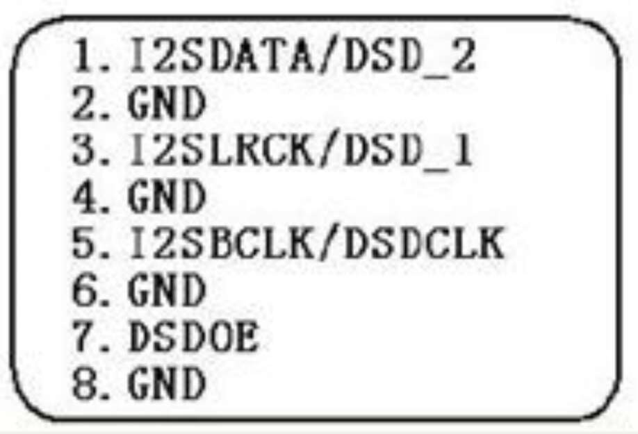 На стороне LKS 7-й вывод я отметил не подключать со звёздочкой, потому как это вход логического уровня у LKS для переключения между PCM и DSD. Не помню, может ли этот старый Шинрико выводить вообще DSD на свой I2S, по крайней мере отдельного пина на переключение у него нету, а у LKS-а вход есть. Можно с этой 7-й ноги разъёма сделать отвод наружу, и переключить LKS на DSD, физически подключив 3-вольтовую литиевую батарейку (типа как для Биосов компов). Подав плюс на этот контакт – переключится на DSD, ничего не подав – будет PCM.