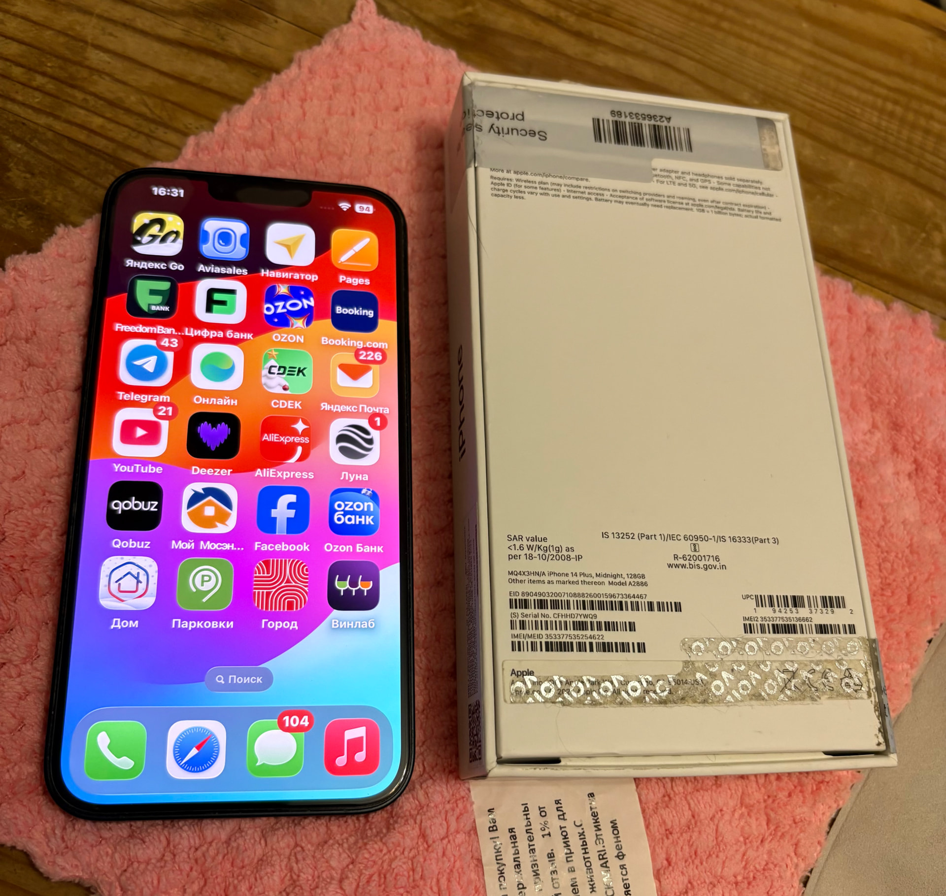 Комплектность полная , коробка чек , скрепка , шнурок для зарядки без адаптера .