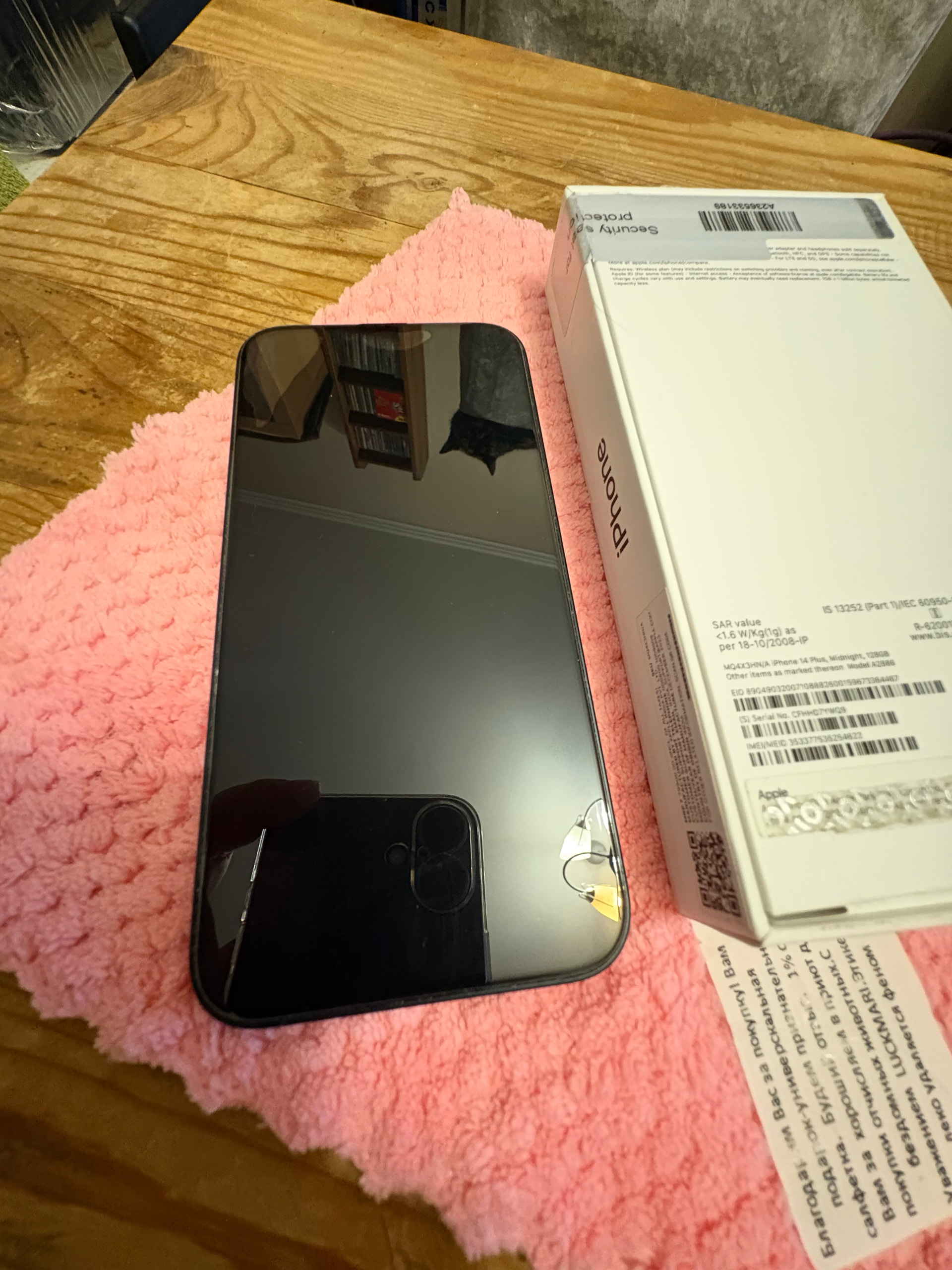 Наклеено стекло, уже с краю отходит , чехол потерт - это я не оцениваю , можно снять и выкинуть .