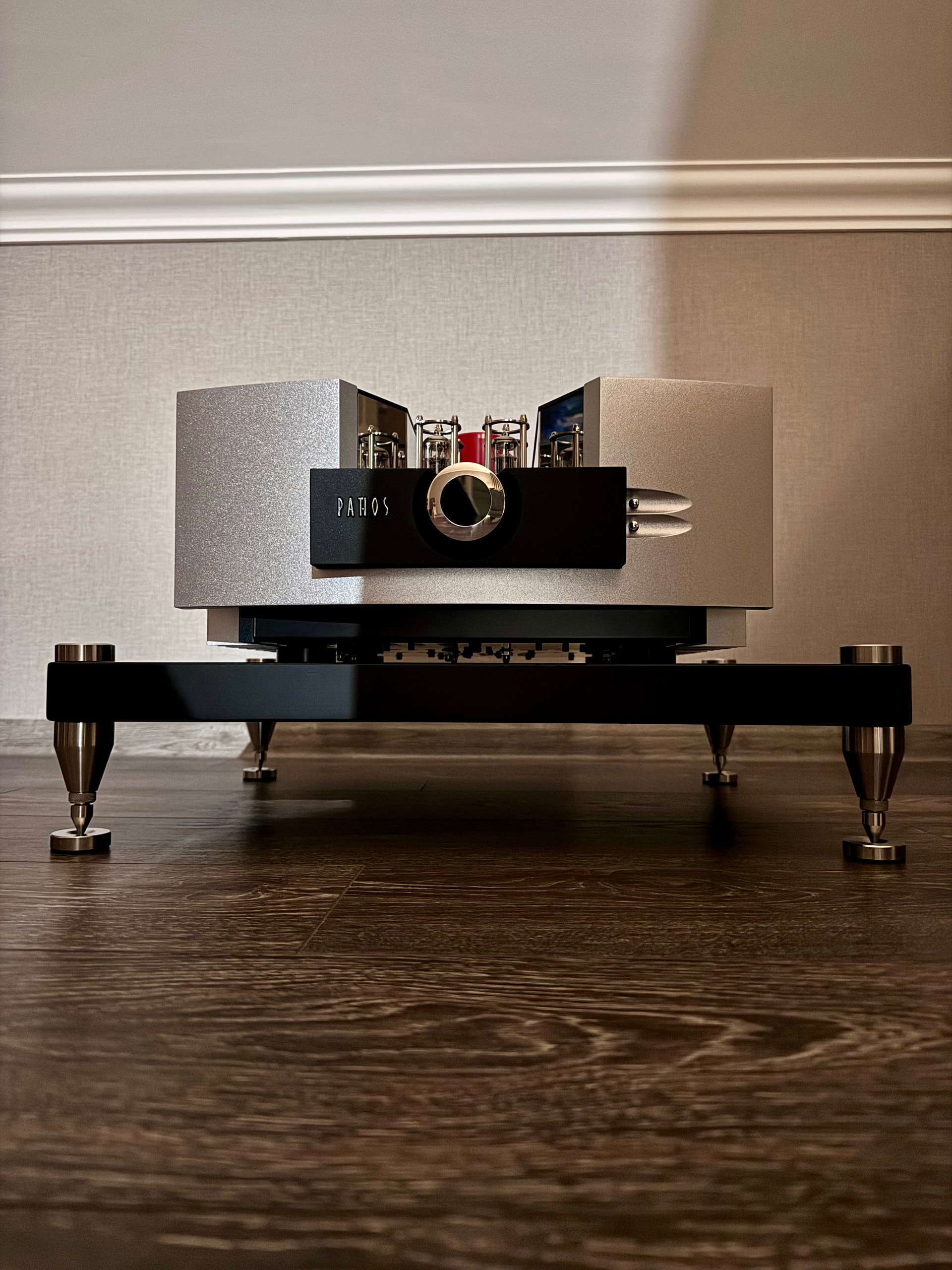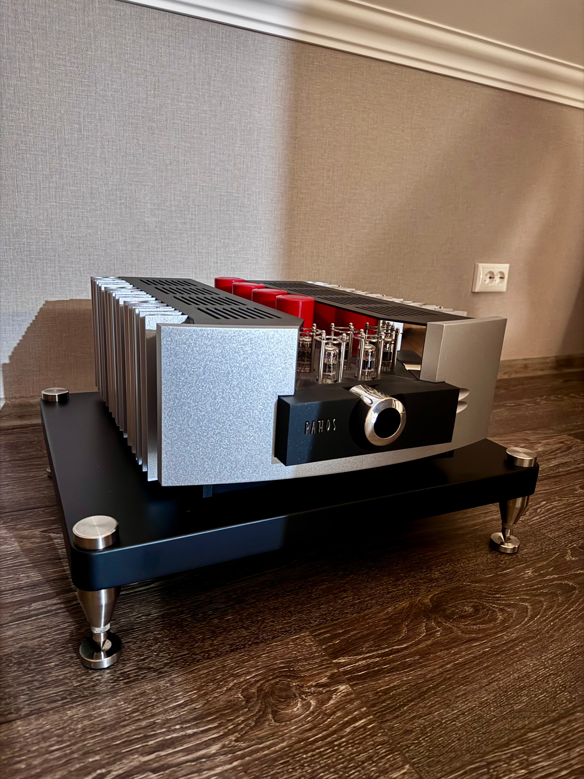 Не секрет, усилитель с выходом в АВ классе, но с большим смещением в А на малой мощности. Что заметил, переход в А класс хорошо слышно, я часто слушаю музыку ночью на относительно небольшой громкости и при прибавке громкости (переход в АВ) несколько меняется звук. В А классе очень выразительно передает весь диапазон, потрясающе работает с НЧ, нижний регистр осязаемый, на тихой громкости своя уникальная атмосфера. Kratos совсем не хочет нагреваться в стандартном режиме работы, еле теплые радиаторы, в классе А греется сильнее, но температуру в комнате он вам не поднимет. В отличие от Inpol2 который за пару часов поднимает в моей комнате на 1-1,5 градуса температуру, в осенне-зимний период это придает особый шарм и комфорт, летом так себе бонус.