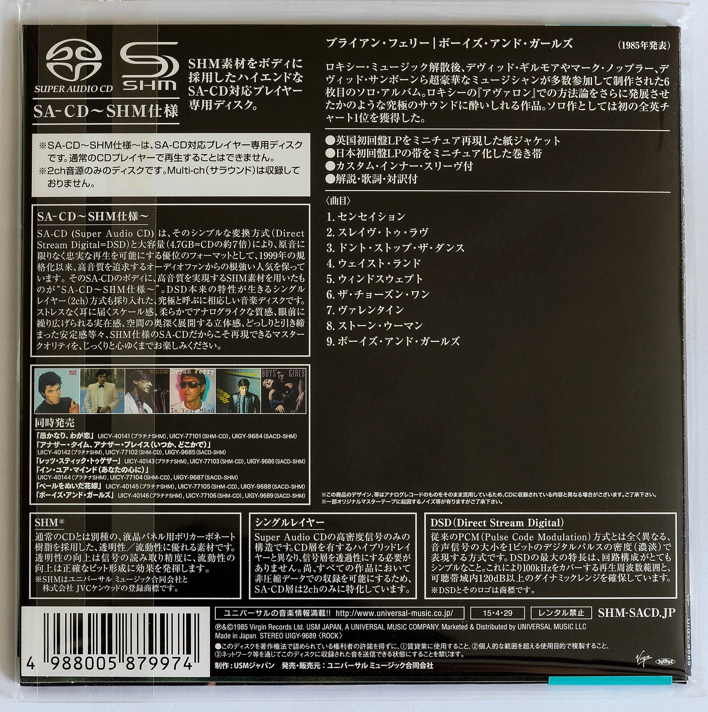 В данном случае (как впрочем и со всем каталогом Roxy Music и Bryan Ferry на shm-sacd) была использована оригинальная мастер-лента. В 99% случаев для shm-sacd используют именно ее, редко можно встретить японскую safety-копию мастер-ленты как источник (пример: Steely Dan Aja).