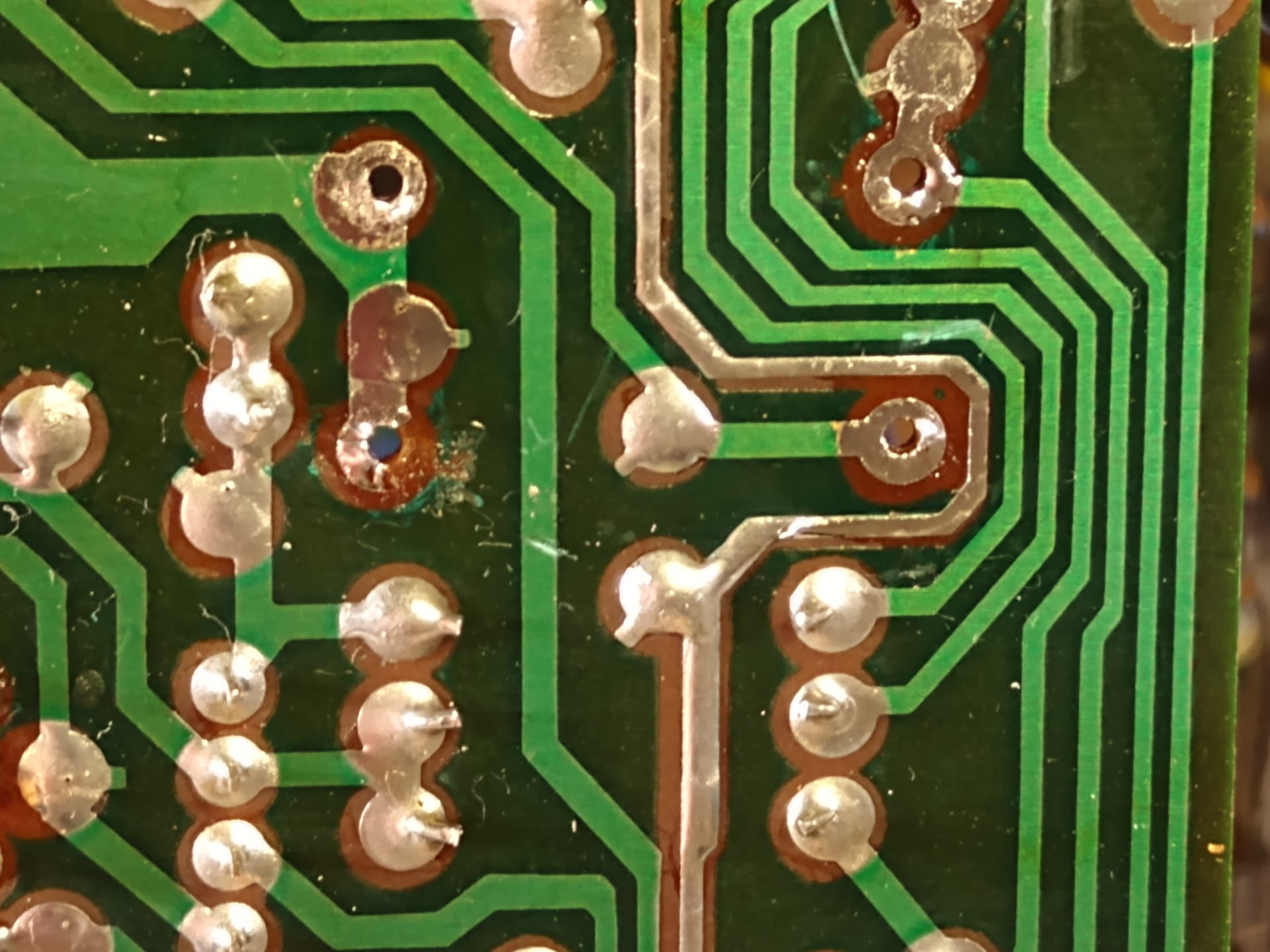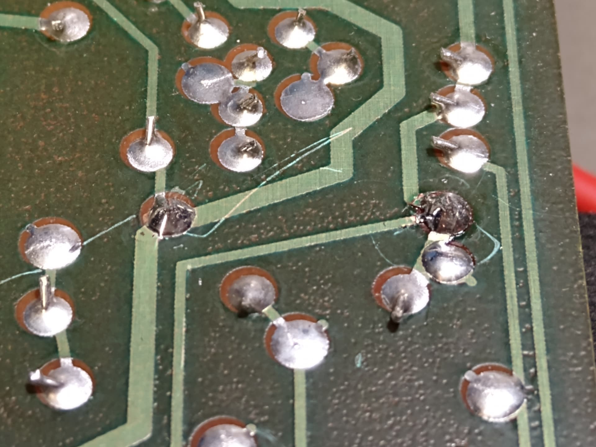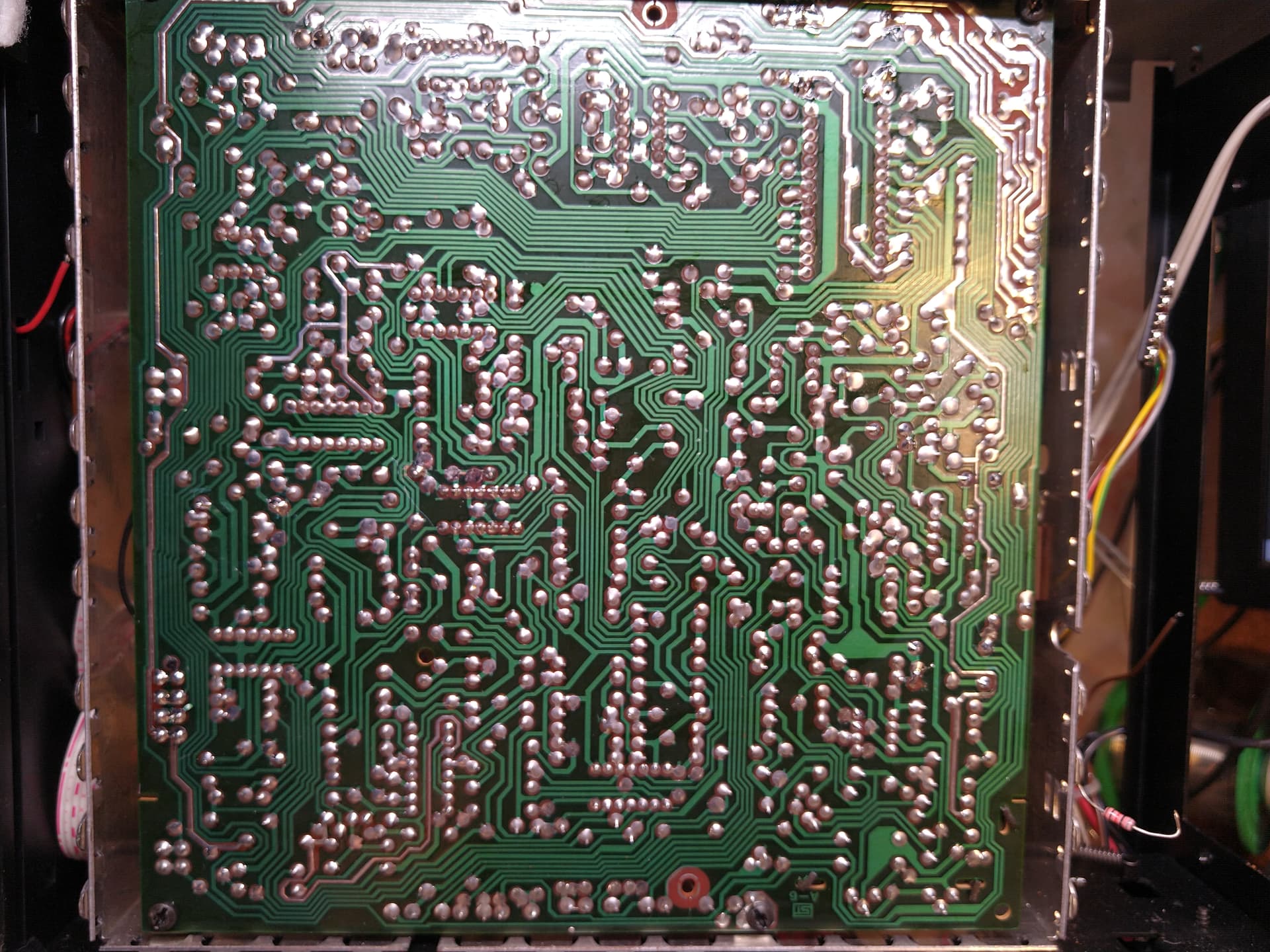 В целом, конкретно этому аппарату повезло, в него не лазили откровенные рукожопы и состояние плат, поэтому, оказалось очень неплохим. Но все же, во многих местах были следы неловкой выпайки элементов, в виде царапи, а иногда и поврежденных дорожек и пятачков.