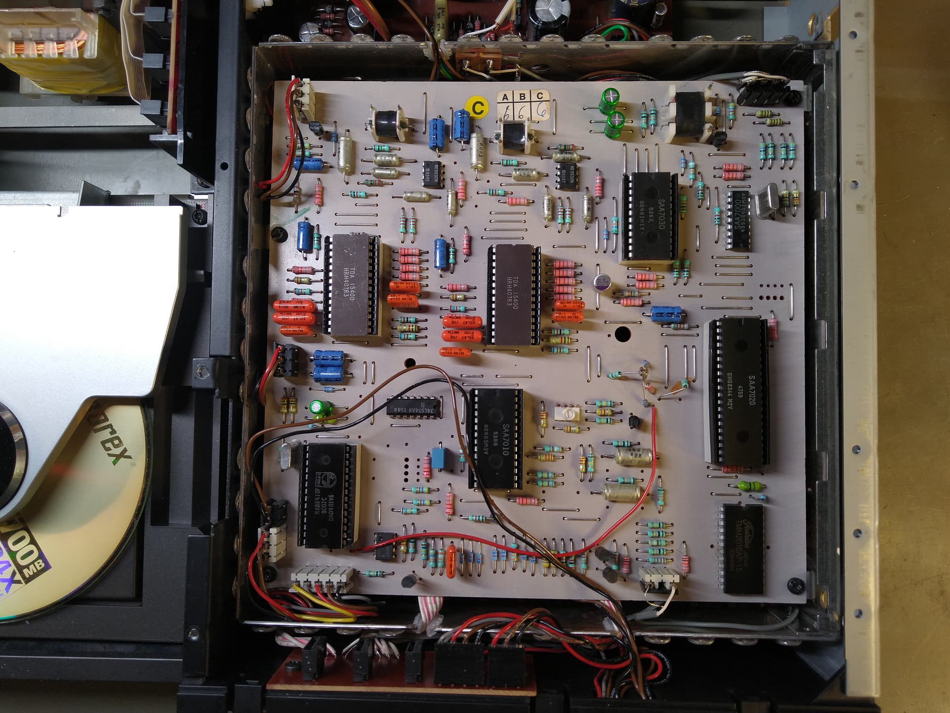 Стальной привод CDM0, пара моно-ЦАПов TDA1540D в керамических корпусах. При открытии лотка привод CDM0 выезжает целиком.