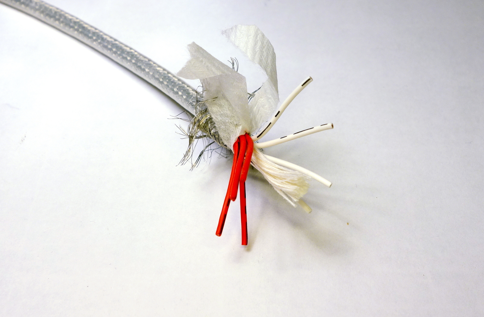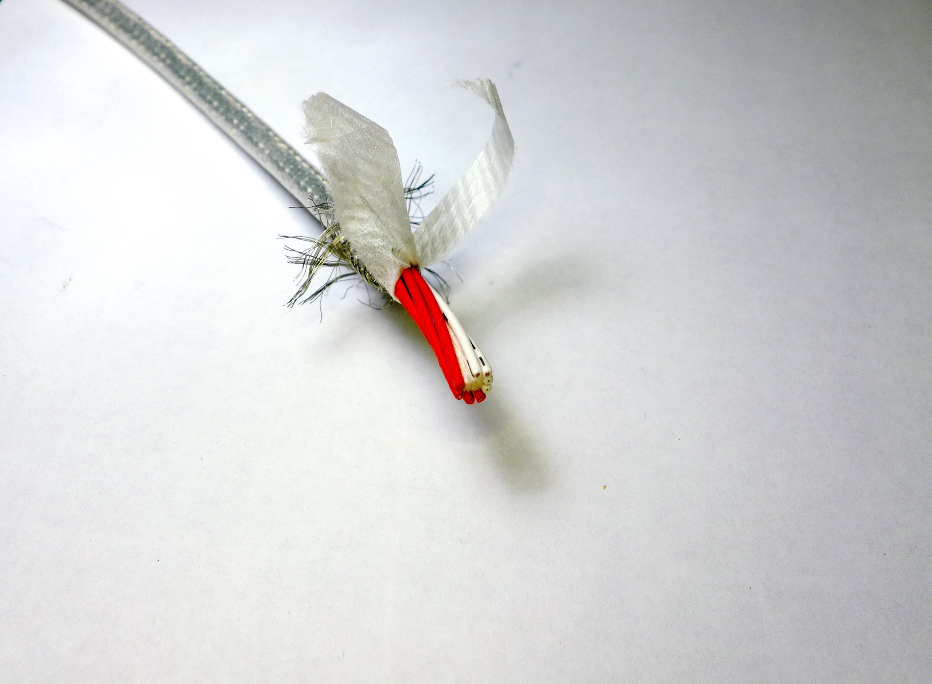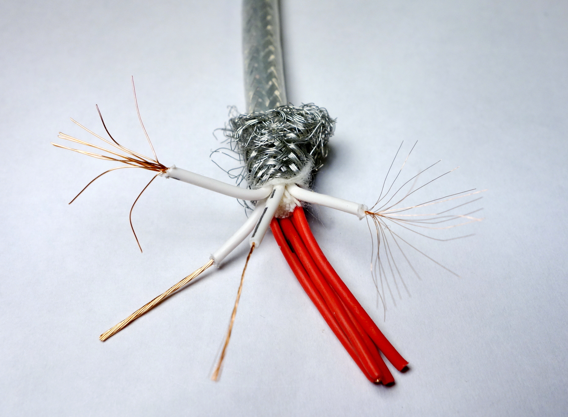 В середине расположен толстый пучок структурных / демпфирующих нитей, опять из натурального х/б материала. Изоляция красных и белых проводов довольно толстая и плотная.