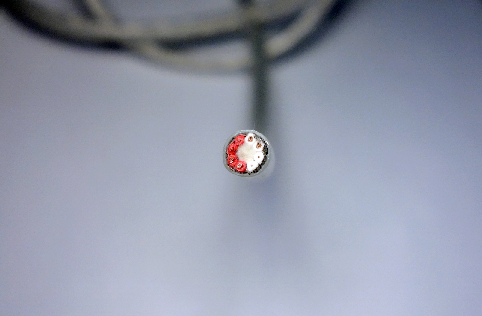Провода внутри кабеля свиты по спирали, но ровно, один к другому, а не парами, как мы видели в некоторых других кабелях.