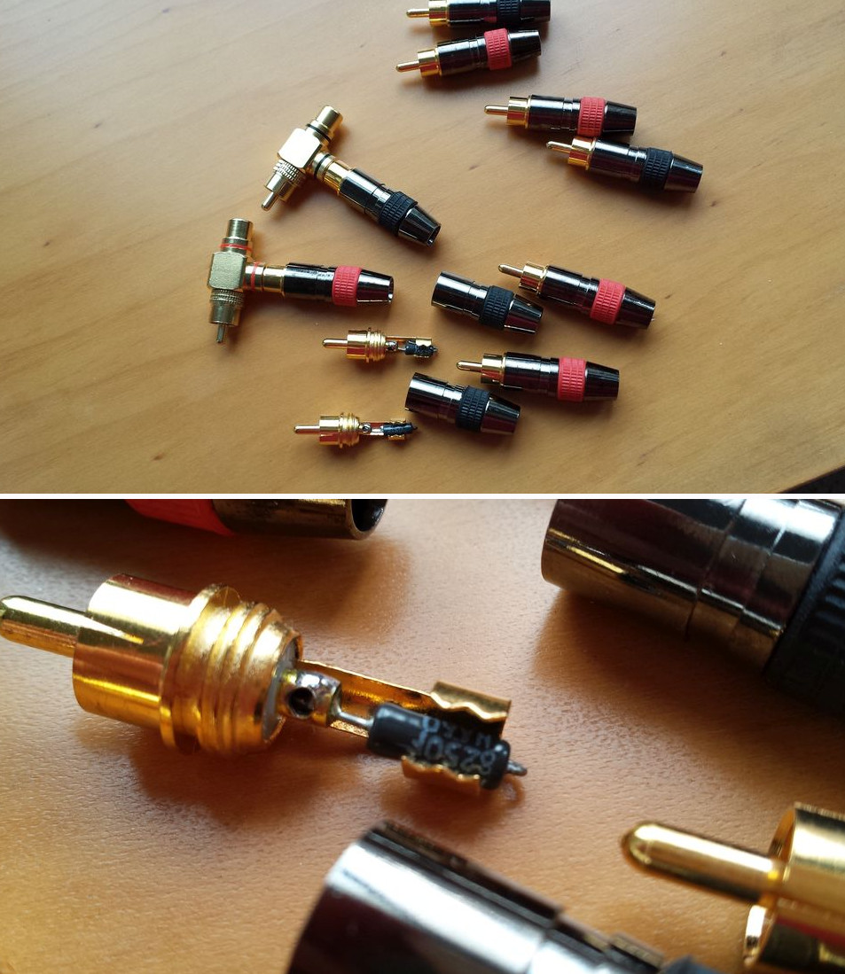 Кстати, есмкость rca разъемов, что гнезд, что штекеров, весьма небольшая не более 5 пф. Полагаю погоды не сделают на фоне емкостей фонокабелей, еще и учитывая их длину.