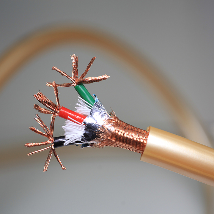 Основная фишка этого кабеля в его строении: в фазовом и нейтральном проводниках имеем три градации толщины жил: одна реально толстая моножила, набор жил потоньше, и много совсем тонких, как волос. Заявлена OCC медь для всех проводников, суммарное сечение каждого - солидные 4.4 mm2 (по данным с сайта), а на катушке с кабелем указано даже 5.32mm2. Не знаю, чему больше верить, но визуально провода реально толстые. Изоляция проводников - полиэтилен. Eсть экран, который я, впрочем, не подключал.