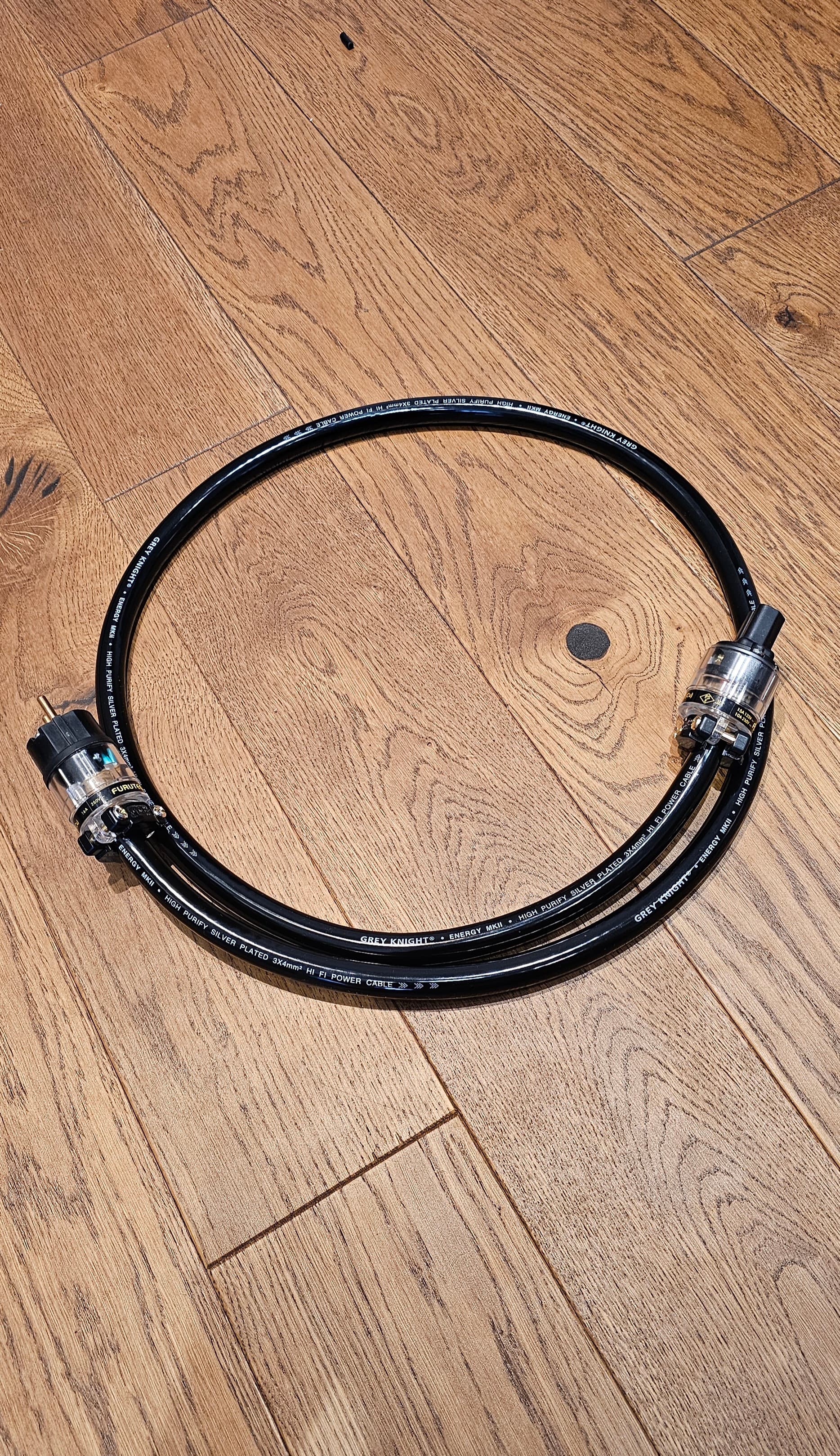 Приехал “Серый рыцарь” мкII от уже известной Xangsane. Посеребренный кабелек. Тяжеленький и визуально качественный. Тактильно такой же как и полюбивщийся многим серебряный LAN. Собрал на 11х латунных Фурутеках. Они у меня дежурные, легко собирать/разбирать. Кабель толстенный. Поставил греть на источник (стриммер Linn majik ds2) вместо SAEC 7000 на 046 оядах. С ним и буду сравнивать.