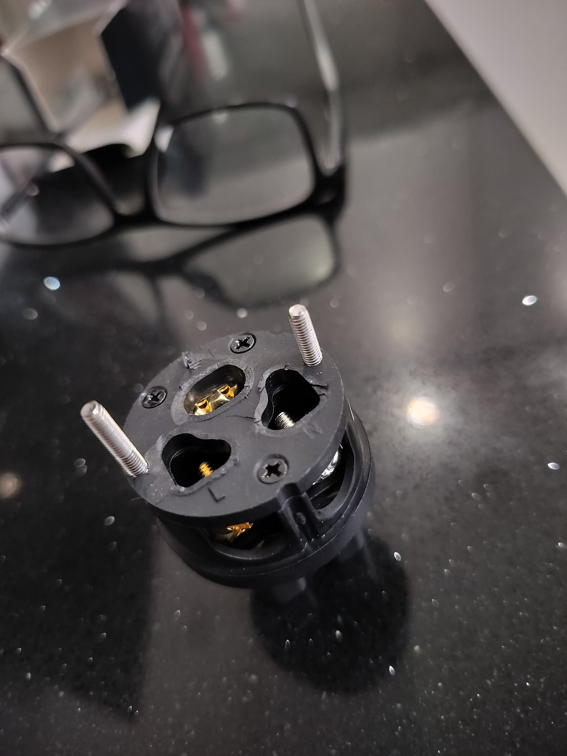 Винты, притягивающие скобу фиксирующую кабель длиннее чем надо, пытался откусить кусачками, не получилось, пришлось покупать винты из нержавейки в магазине на замену.