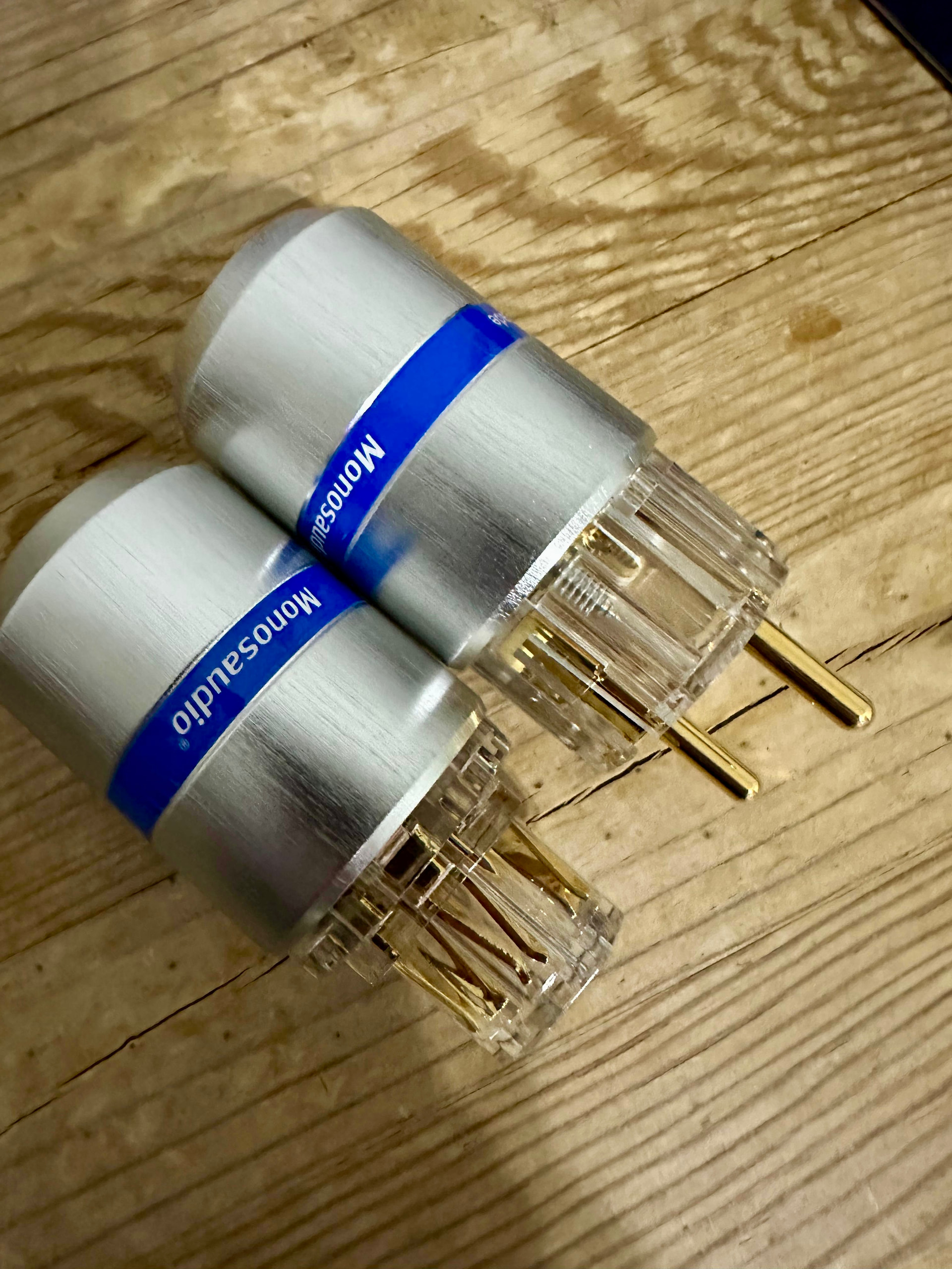 Довелось сравнить вилки monosaudio 104 родий,107 медь и wattgate 5266 позолоченная. Кабель Belden 19364, ложка schurter.