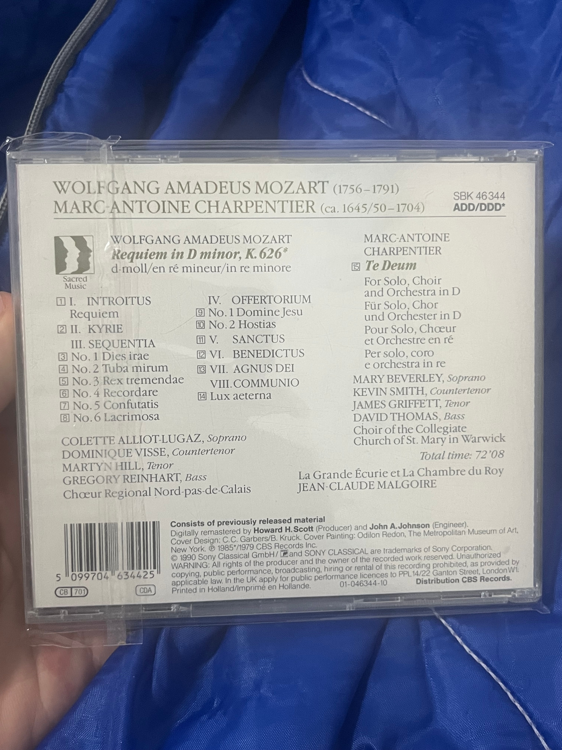 - Mozart: Requiem / Charpentier: Te Deum (Jean-Claude Malgoire, SONY, Австрия).