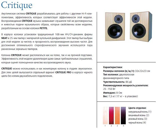 Что касается того, какие колонки из полочных я бы себе купил бы из Нитов если бы не был бы ограничен специф. условиями прослушки, то тут однозначно Критик. Новые Петит SX не слышал, но думаю отличий не много в звуке будет- вполне реально, что основные отличия только в корпусе (у Критик он чуть побольше и ФИ у Петит 2 штуки). Думаю, что Критики и ушли из модельного ряда только из-за Петитов SX.