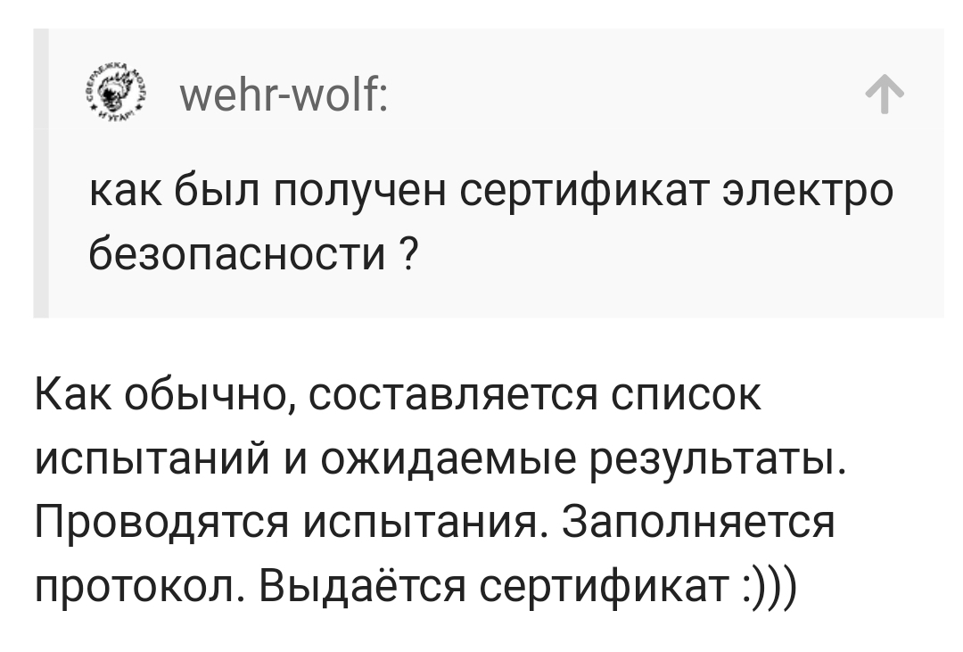 Нам показалось, что не только сертификат электробезопастности отсутствует (для картонного корпуса это просто нереально ) но и любые другие сертификаты у производителя по всей видимости отсутствуют как таковые …