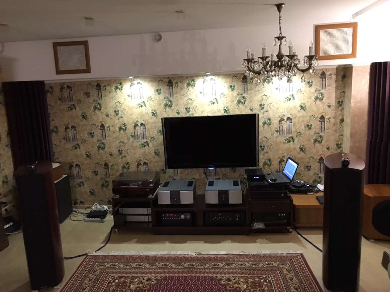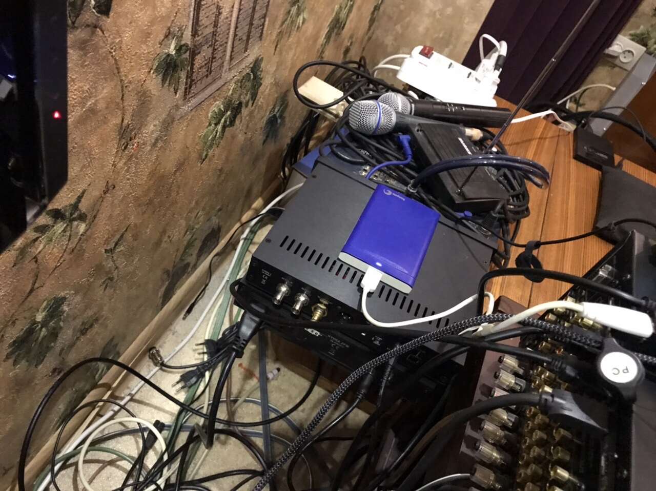 Принципиально в этой системе используются обычные силовые кабели и с питанием полу-кошмар, разве что аудио-компоненты подключены на выделенку, дистрибьютор — обычный Legrand.