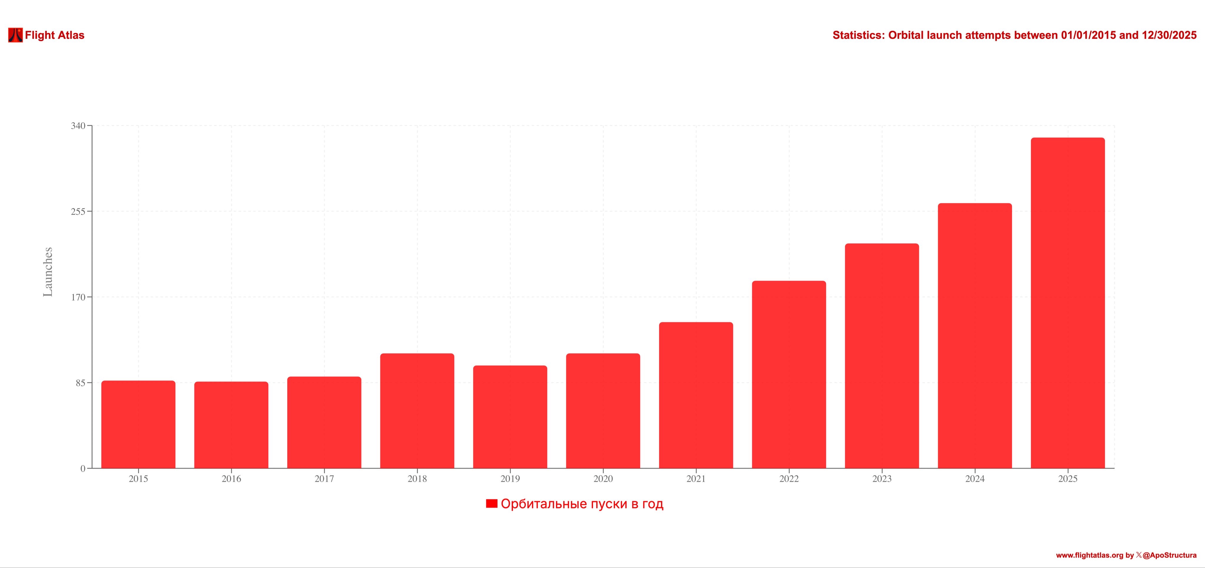Китай в 2025 году выполнил 93 орбитальных пуска, установив новый национальный рекорд.
