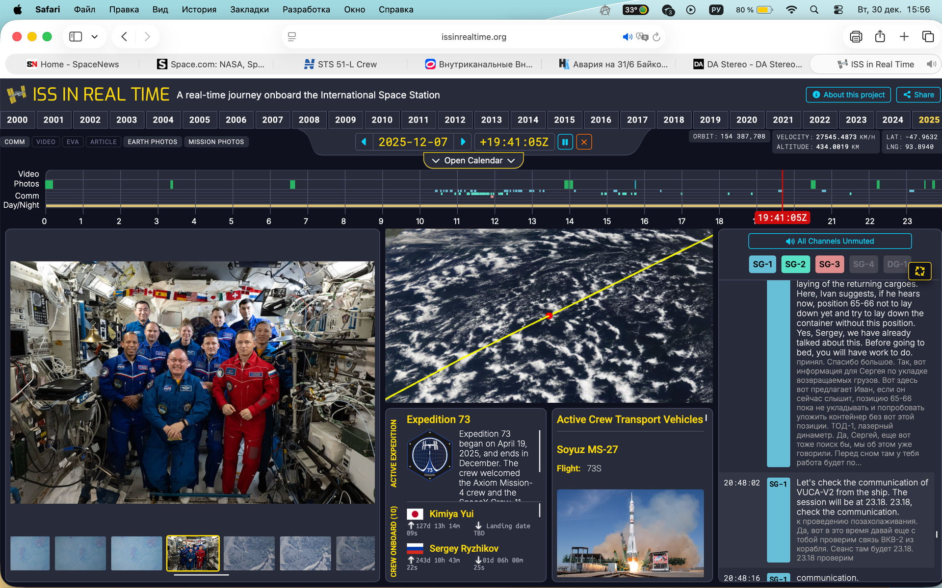 25 лет МКС в записях, фотографиях, переговорах, параметрах орбиты.