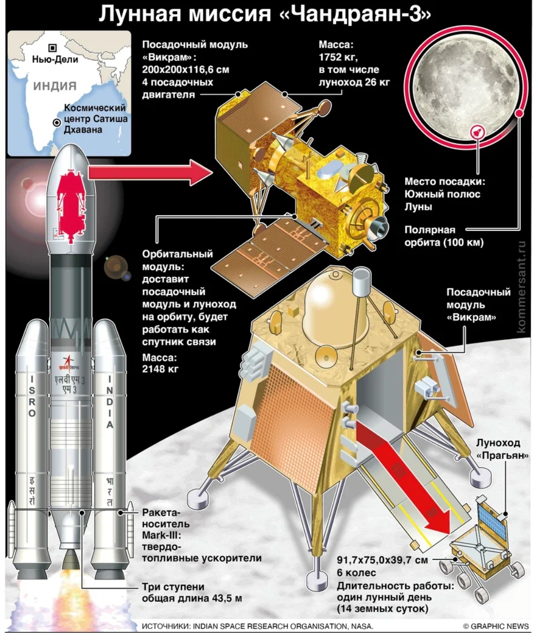 Чандраян 3 готовится к посадке на южный полюс. Сделан финальный манёвр и установлена связь с Ч2.