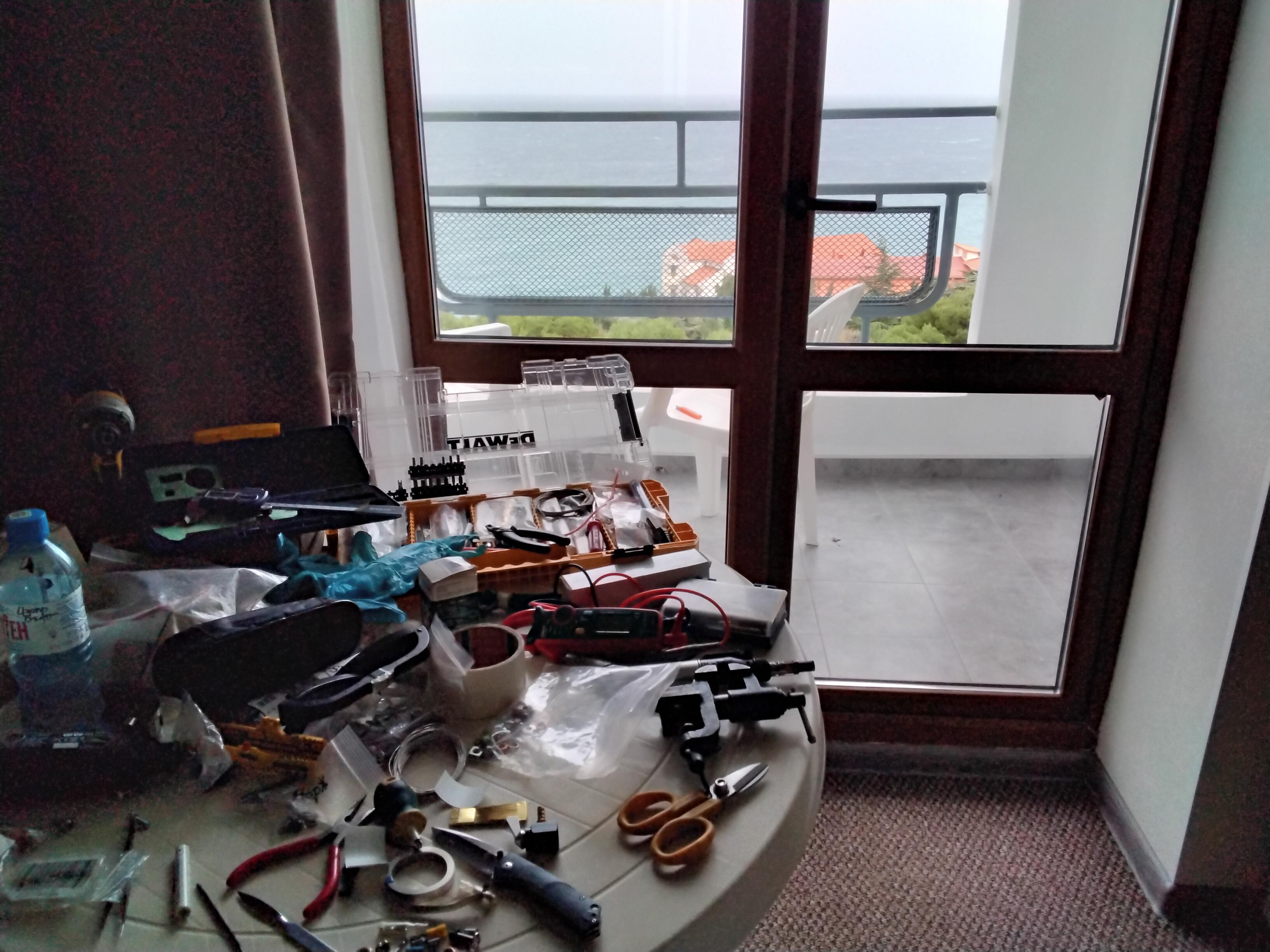 Да, шум какой-то идет, оттуда наверное. Еще ветрит, с неба вот что-то западало. Никакого мапедного каталова уже не хочется и ваще из номера не хочется. А поковырять че-нить - вот, разложился!