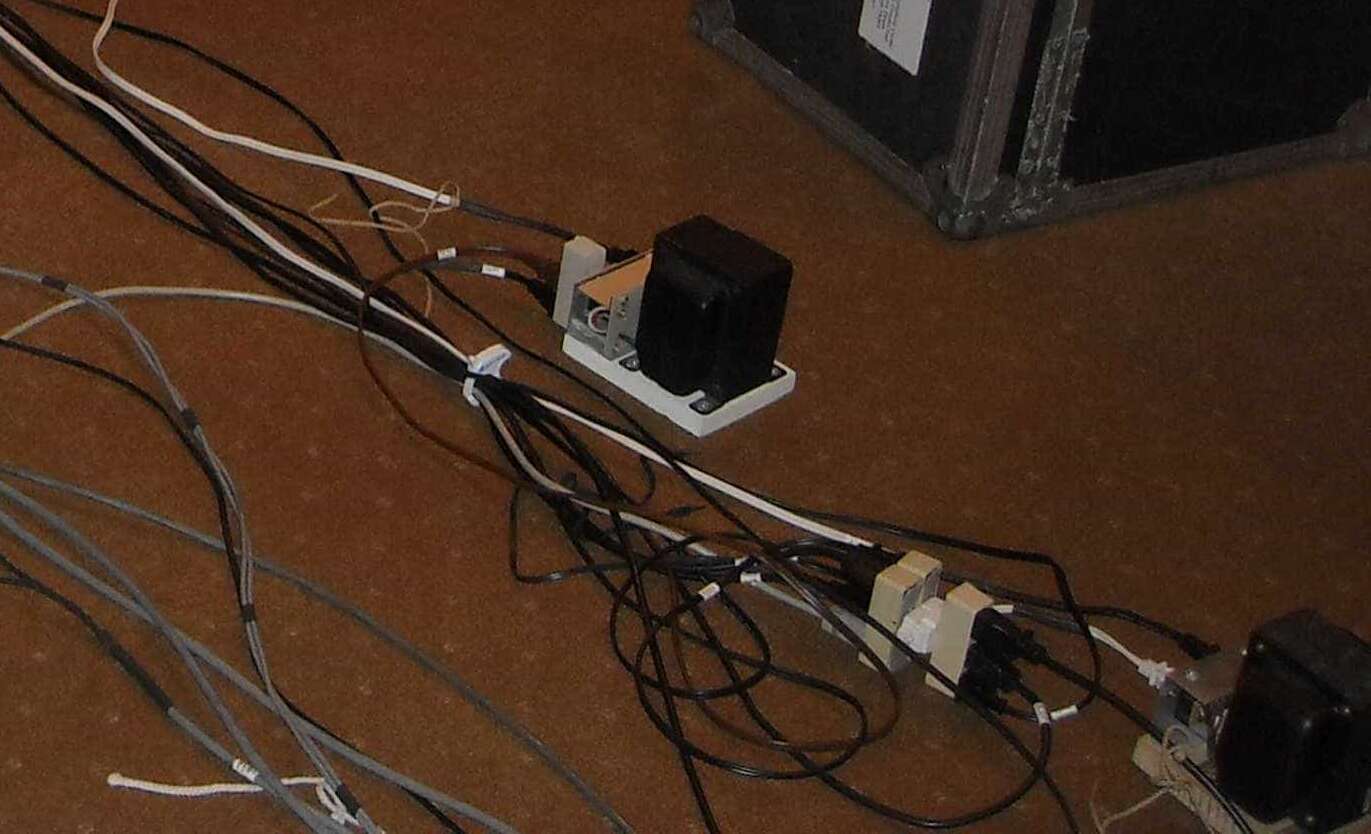 Кабельное хозяйство в студии. Обратите внимание на розетки и вилки. )