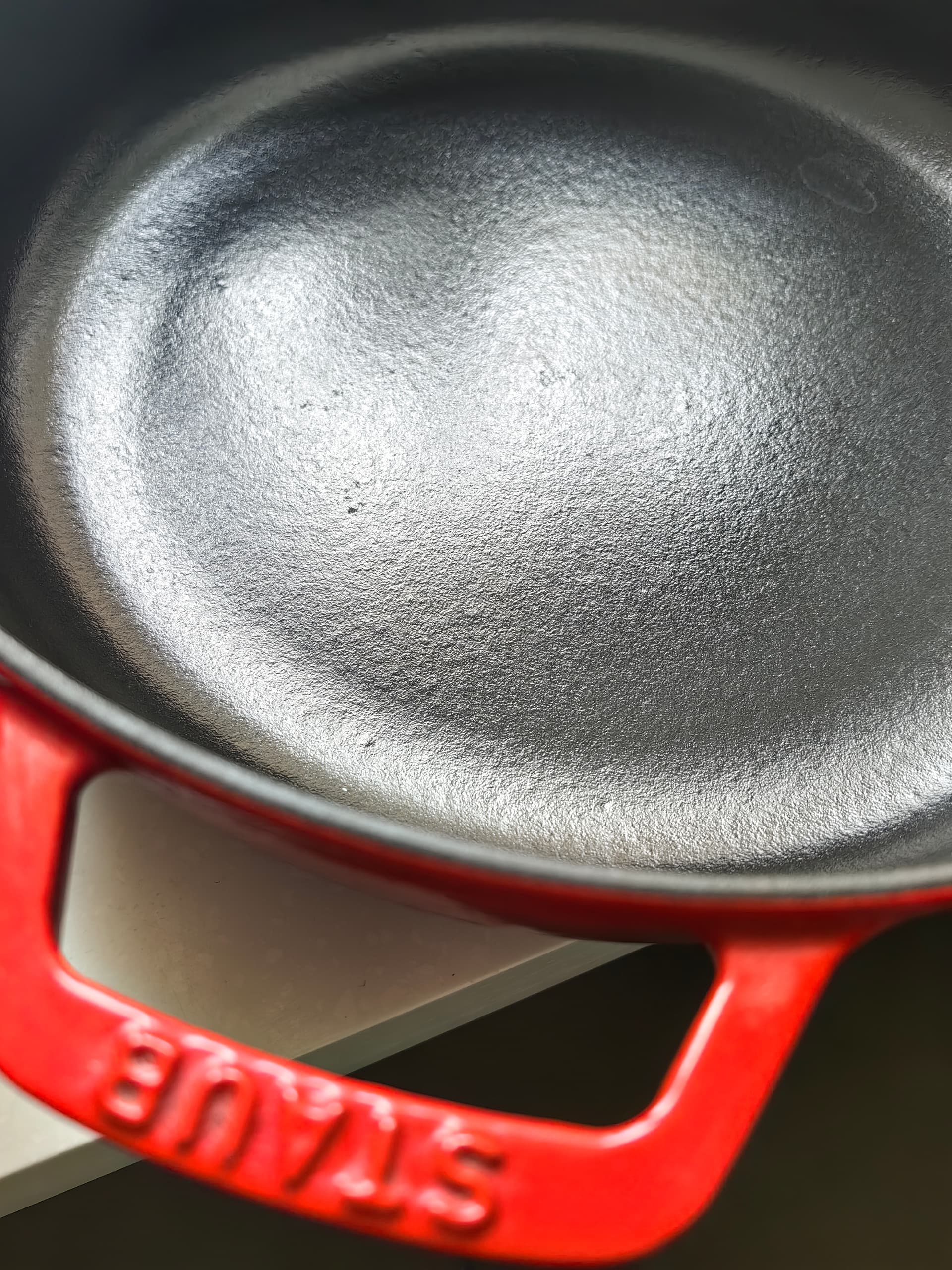 Чугун с эмалью с 2012 , потом уже докупал кучку других, никаких вопросов. По поводу контраста температур все верно, нагревать на среднем, далее можно добавлять, мою Ариэлем внутри, внешние нагары Грасс гриль.
