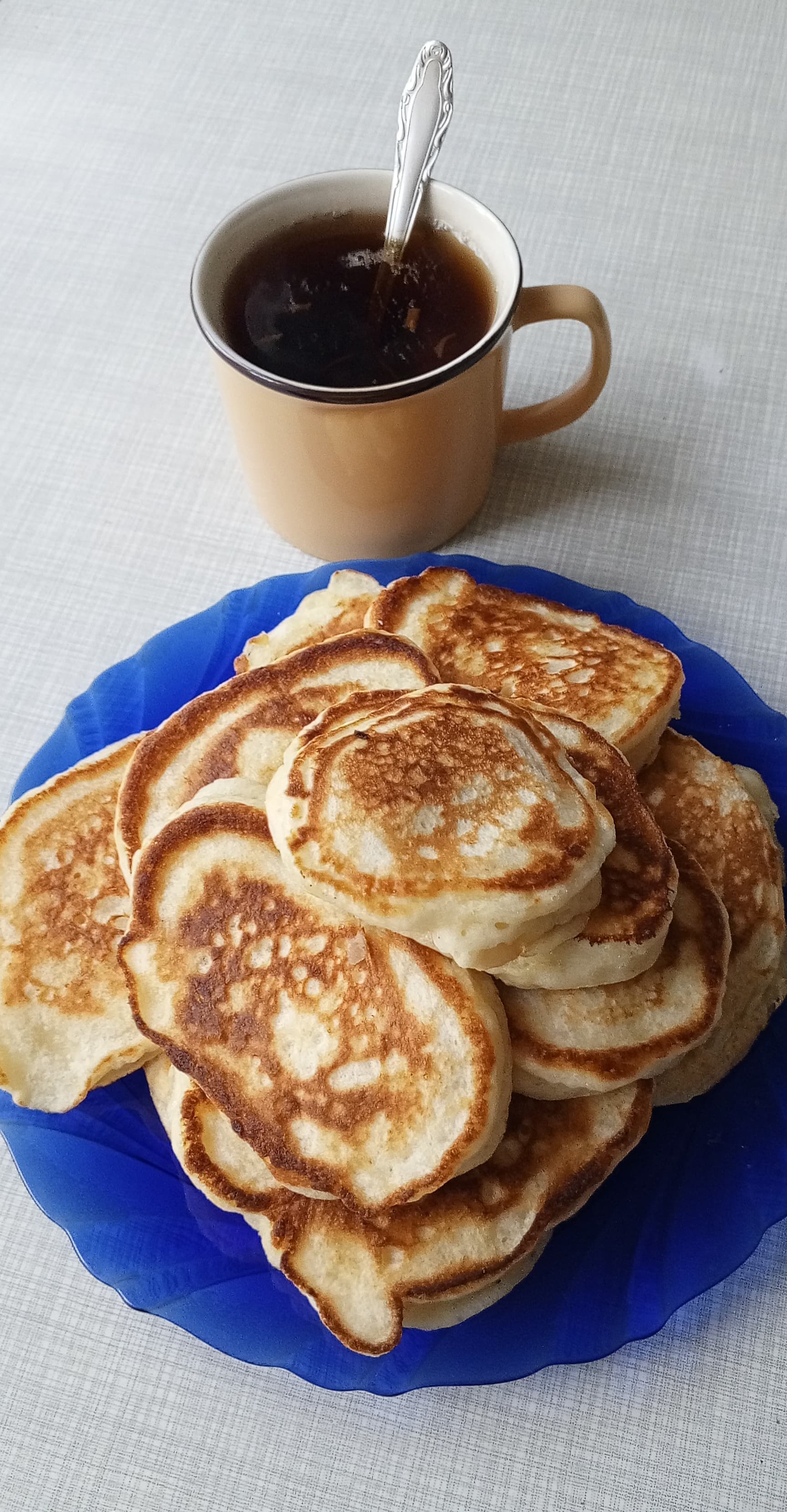 Нашел в холодильнике остатки кефира, оладьи на полдник получились))