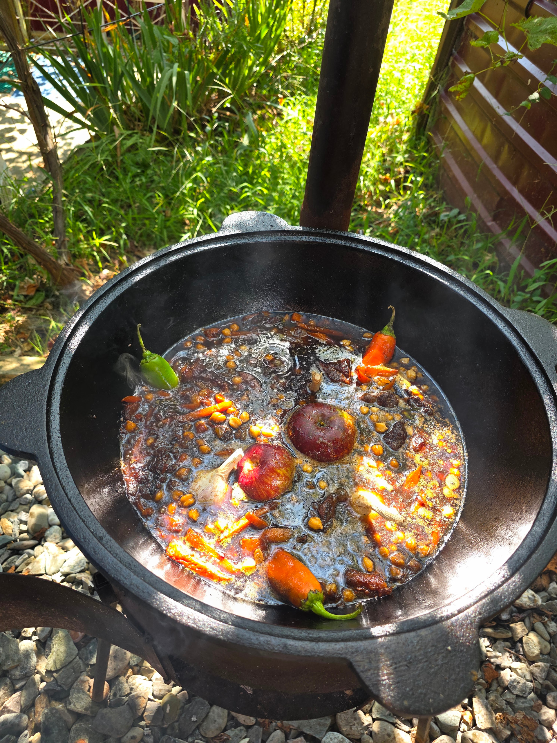 Зирвак классический, лук, мясо, морковь, нут, изюм, перец, чеснок. Яблоко это был эксперимент. Плохого ничего не могу сказать, яркого вкуса не добавилось, но от эстетики удовольствие получил.