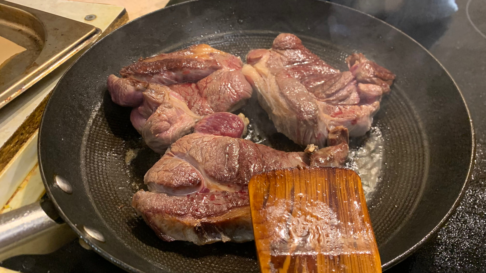 Обжарил до корочки на сковороде и довел в духовке при 180гр 15 минут.