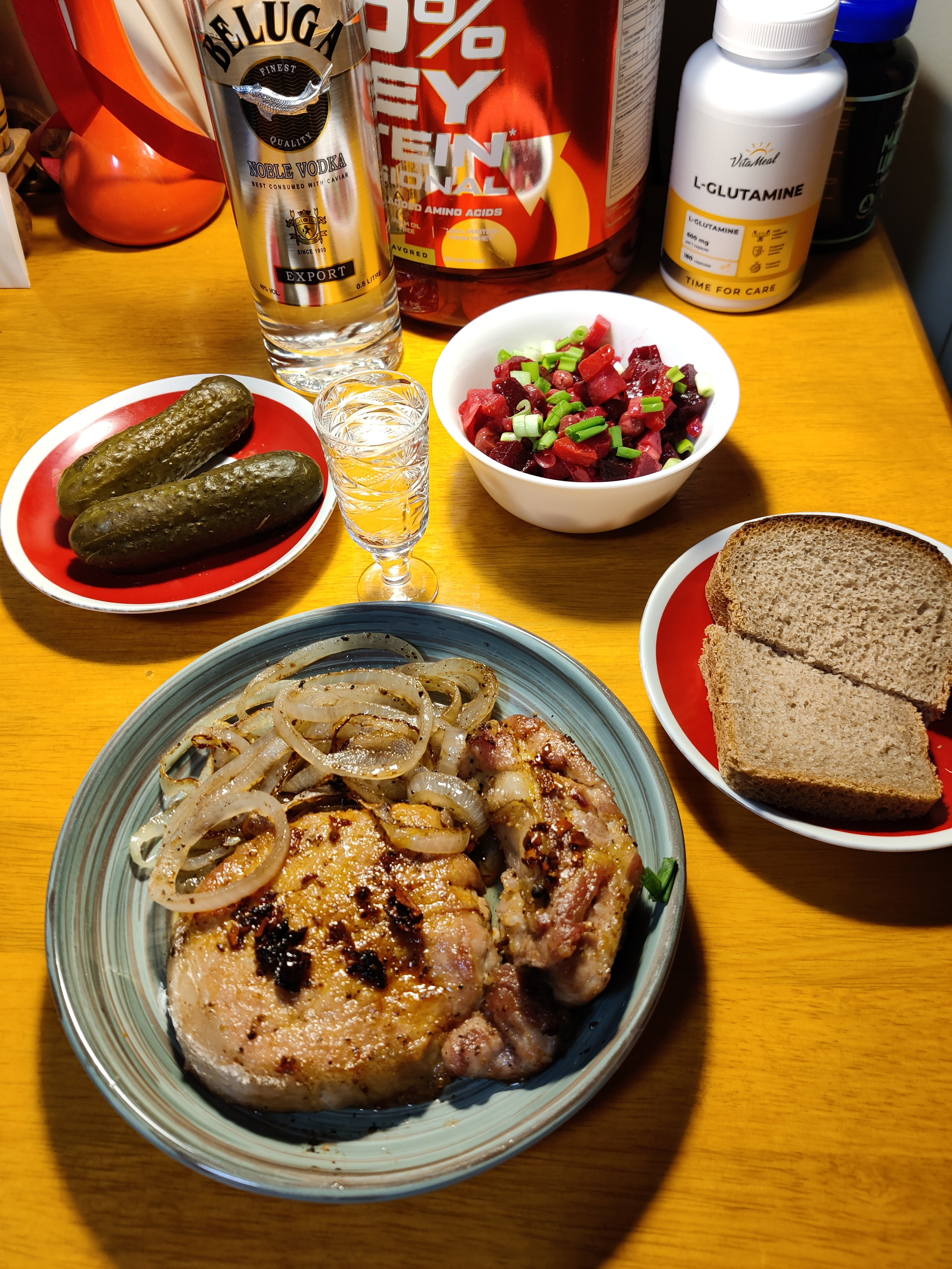Огурцы - 100, мясо 300 - не дешево получается. Хотя - нам с сыном на неделю обедать и подумаешь что тарелка супа в кафе-ресторане 300-400 и мясо нужно ловить - так и недорого и знаешь что ешь.