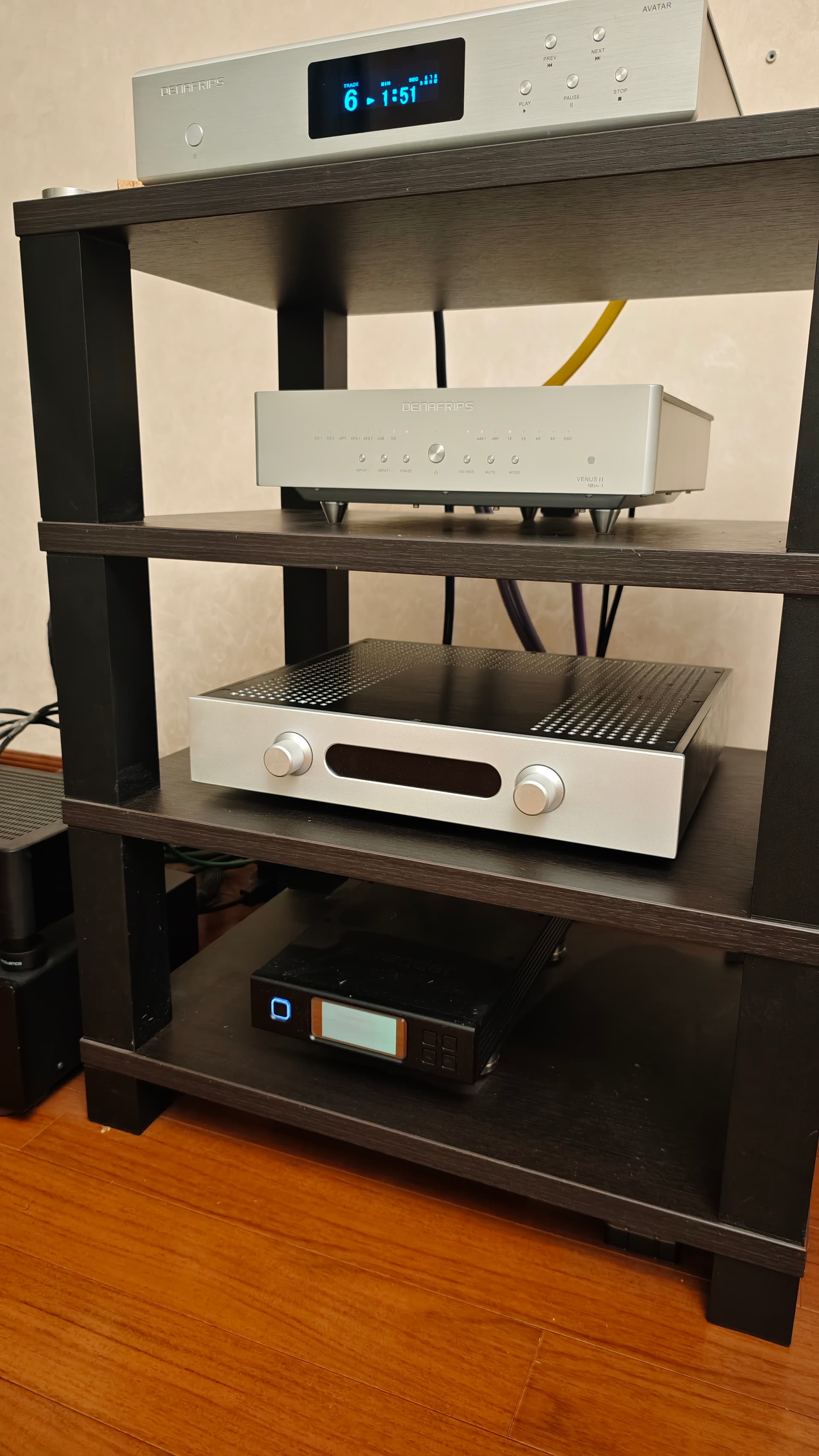 Файловый транспорт: Aurender N100H, CD-транспорт: Denafrips Avatar, ЦАП: Denafrips Pontus II. Предусилитель: Musician Monoceros. Усилитель мощности: Sciber Amploi. Акустика: Spendor D7.2.