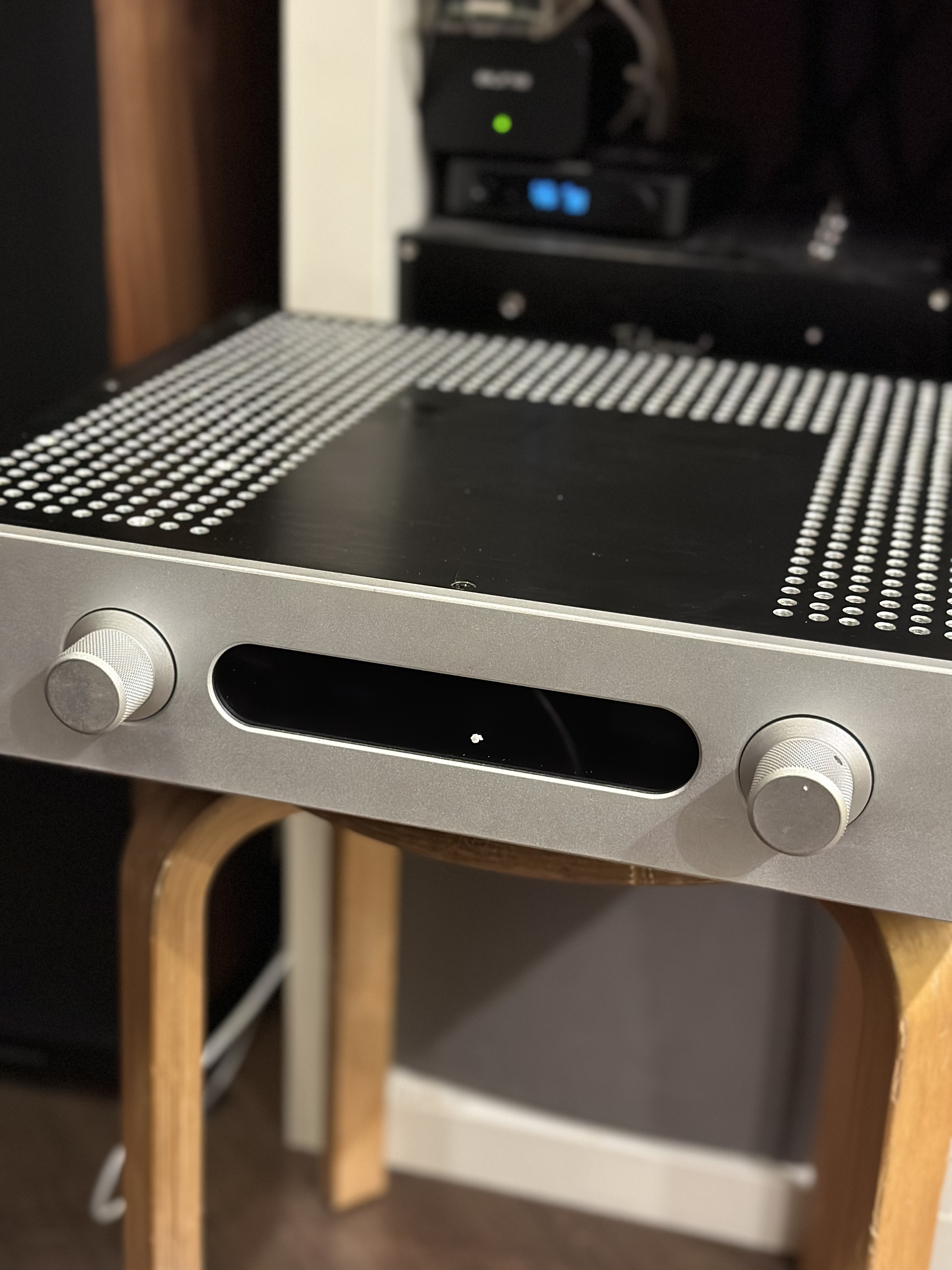 Усилитель уже у меня, стоит пока на табуретке, отогревается в прямом смысле.