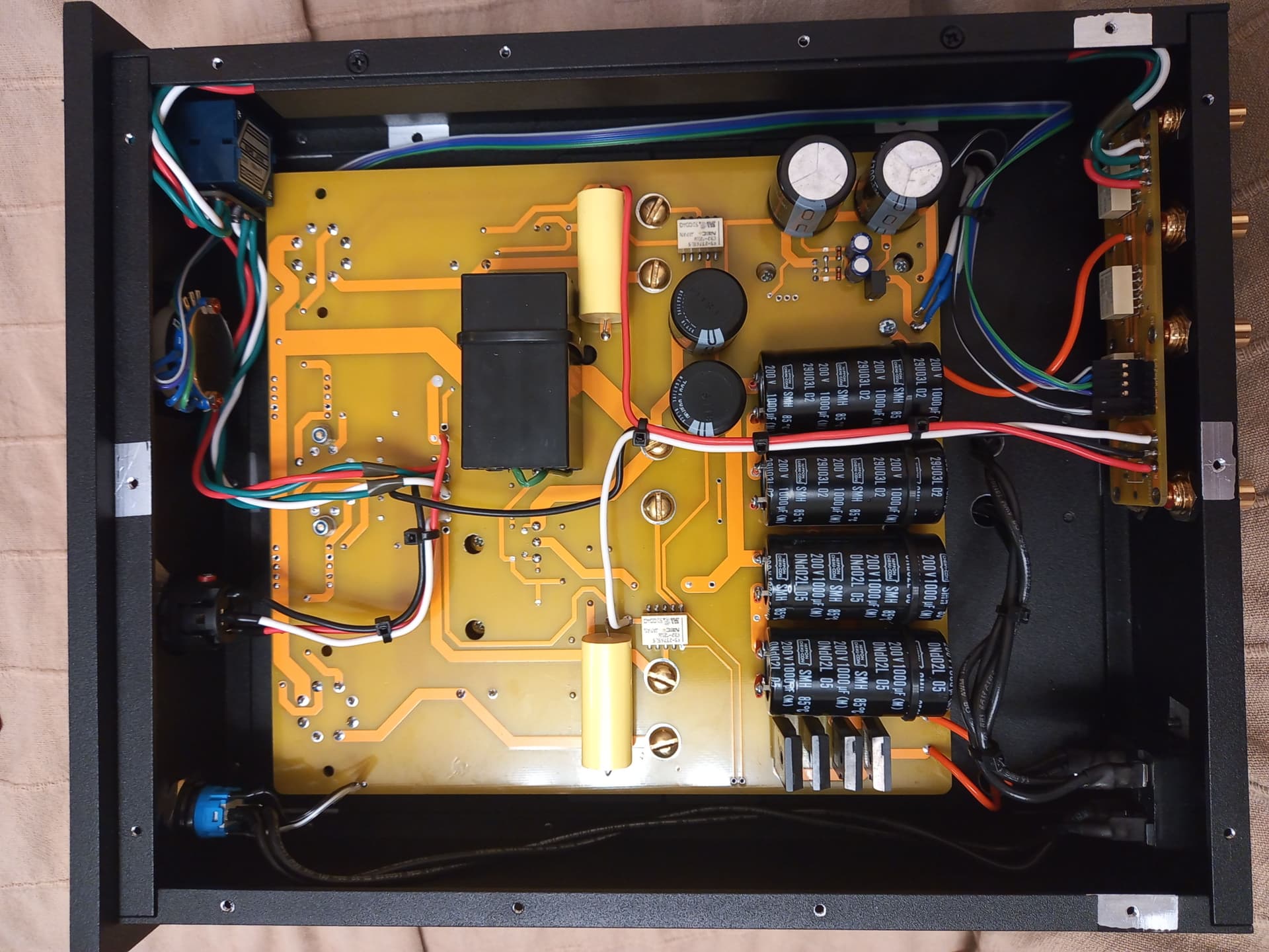 Собственно на выход, чтобы сильно не мучиться, поставил Mundorf TubeCap, на 100мкф. И один такой же по питанию, сразу после фильтра на полевике.