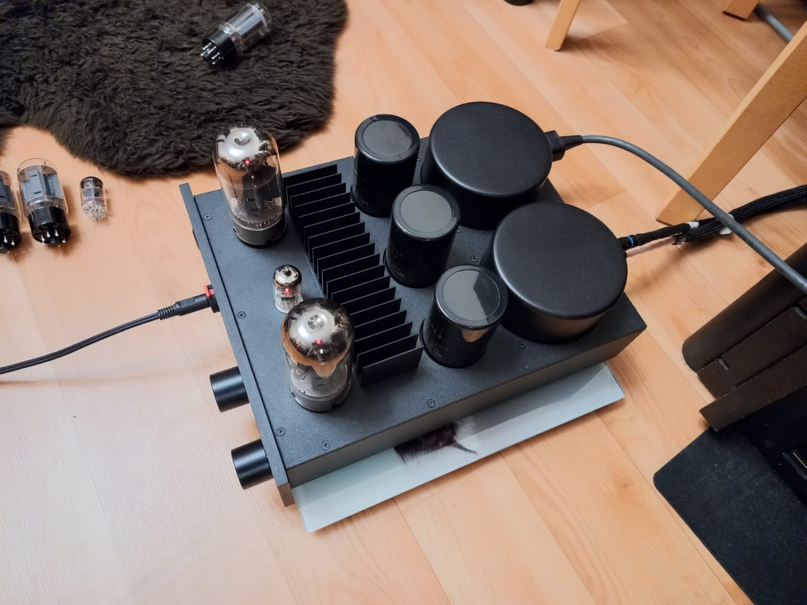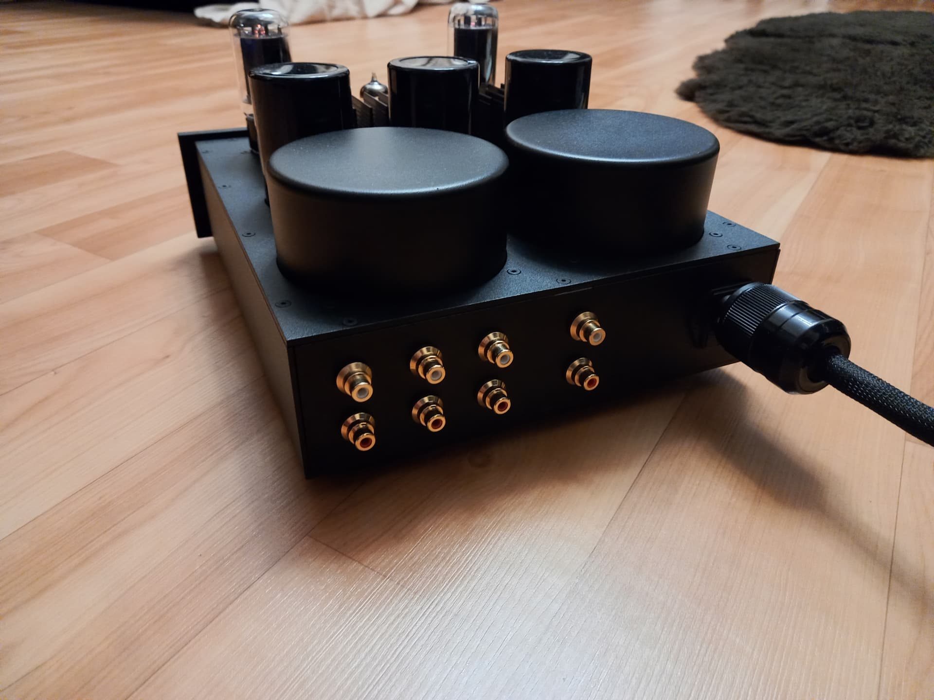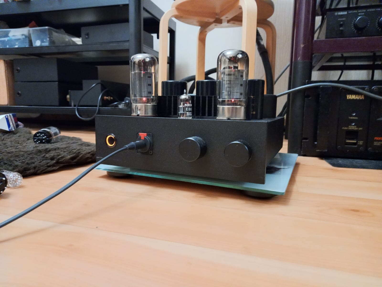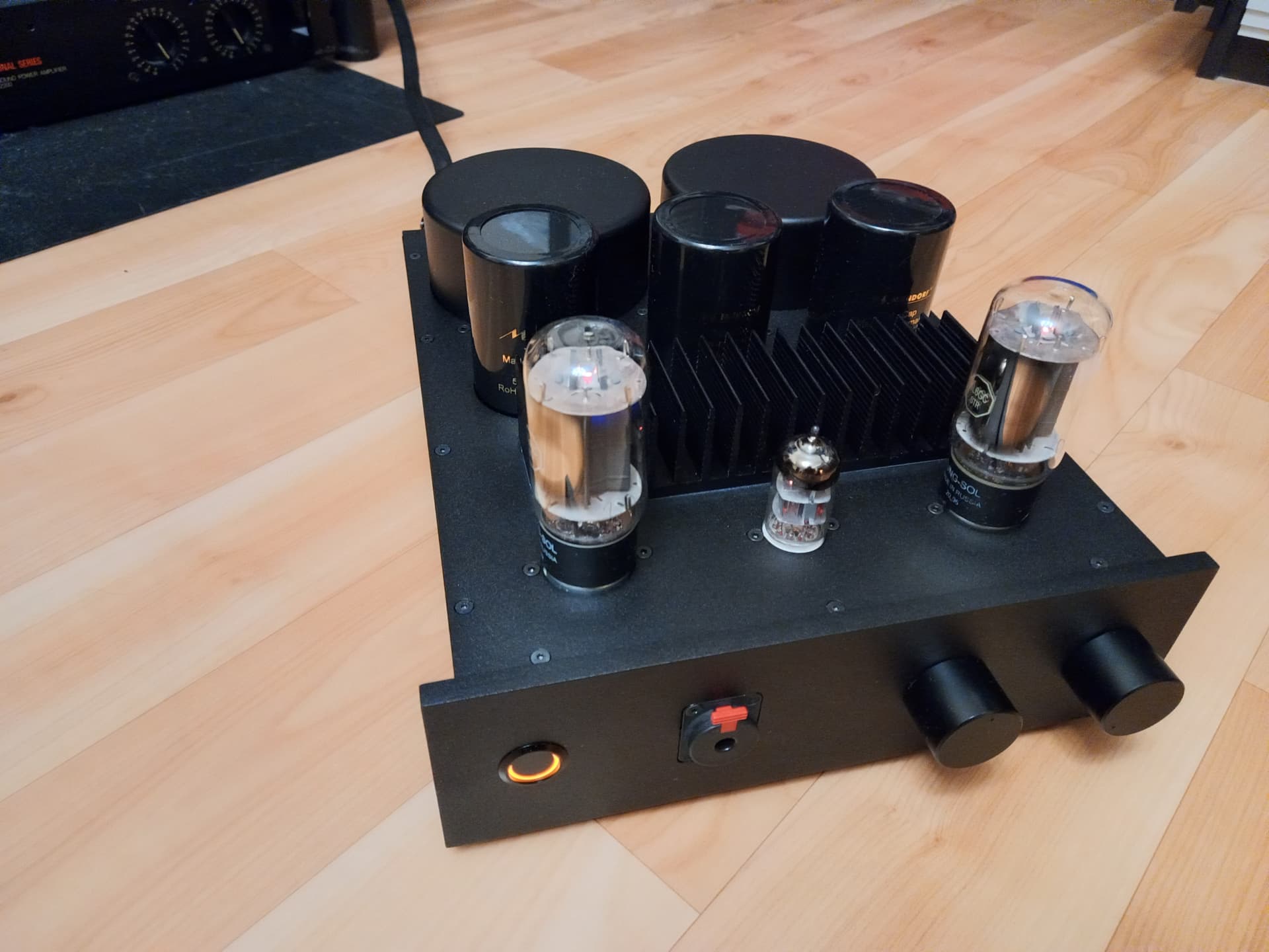 В результате небольших игр с лампами, комплект там сейчас установлен такой - Siemens E88CC на входе, и пара Svetlana 6550 на выходе. Звучит потрясающе - открыто, мощно, красиво.