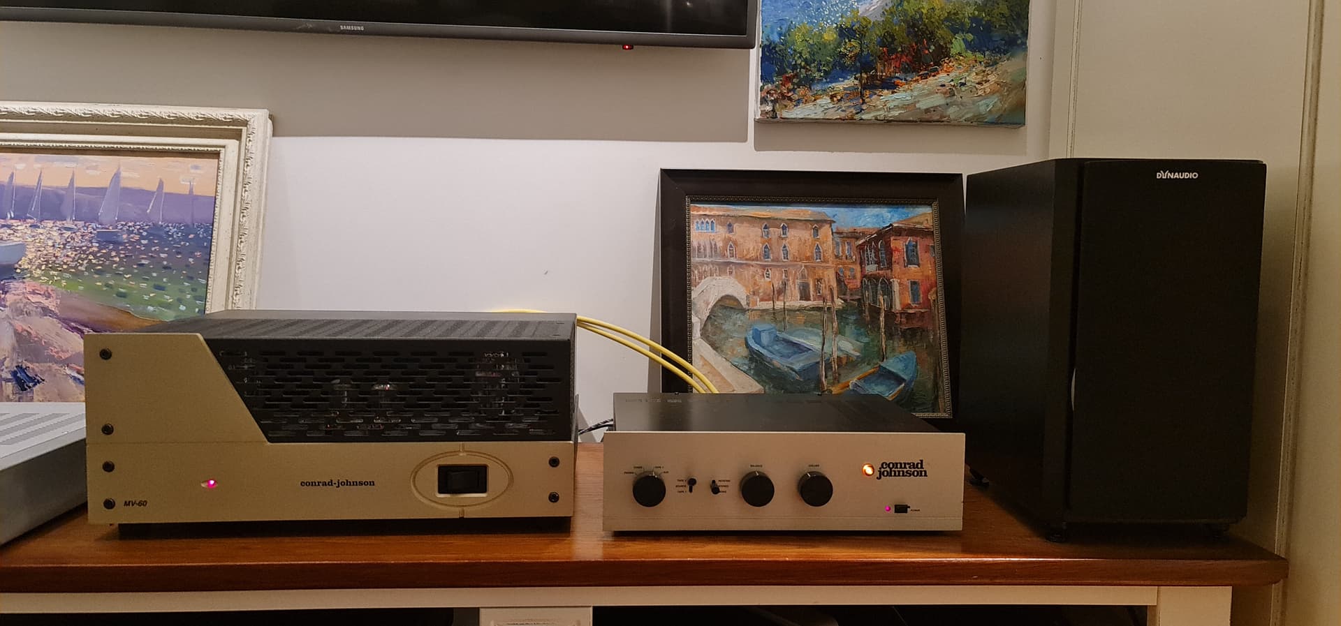 За год сожительства со связкой Conrad-Johnson MV-60se + PV2 лишь однажды подумал искать альтернативу. Смена пары ламп закрыла крамольные помыслы. Много произошло изменений в системе, но усилительная часть стабильно демонстрировала высокое разрешение. Более всего, лично, не перестает удивлять масштаб и голографичность. С Dynaudio очень хорошо. Напомню, на источнике Linn majik ds2. Сейчас занимаюсь питанием. Открытием стало просто гигантское влияние вилок-ложек на звуковоспроизведение.