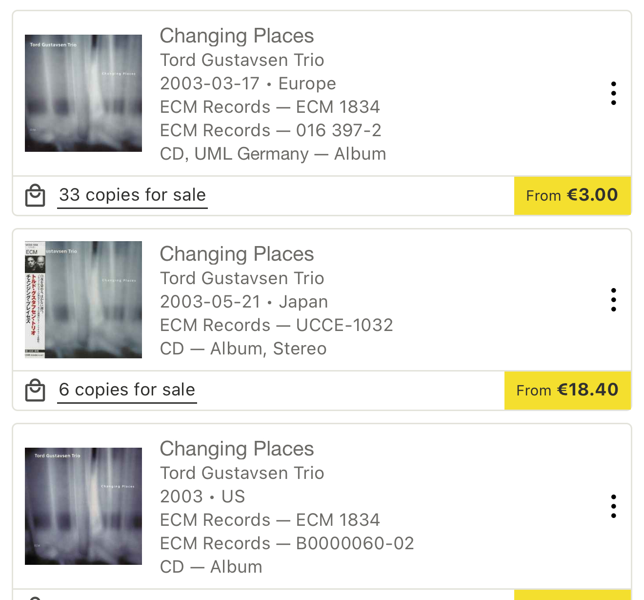 For ECM releases after 2000, you should generally look for German pressings, particularly for the initial CD releases, as ECM is a German label and the primary manufacturing has historically been done in Germany. While some later releases were also pressed in the US, German pressings are generally considered to be the “first pressings” for those that existed before a specific release’s North American market or were intended to be manufactured at the home base.