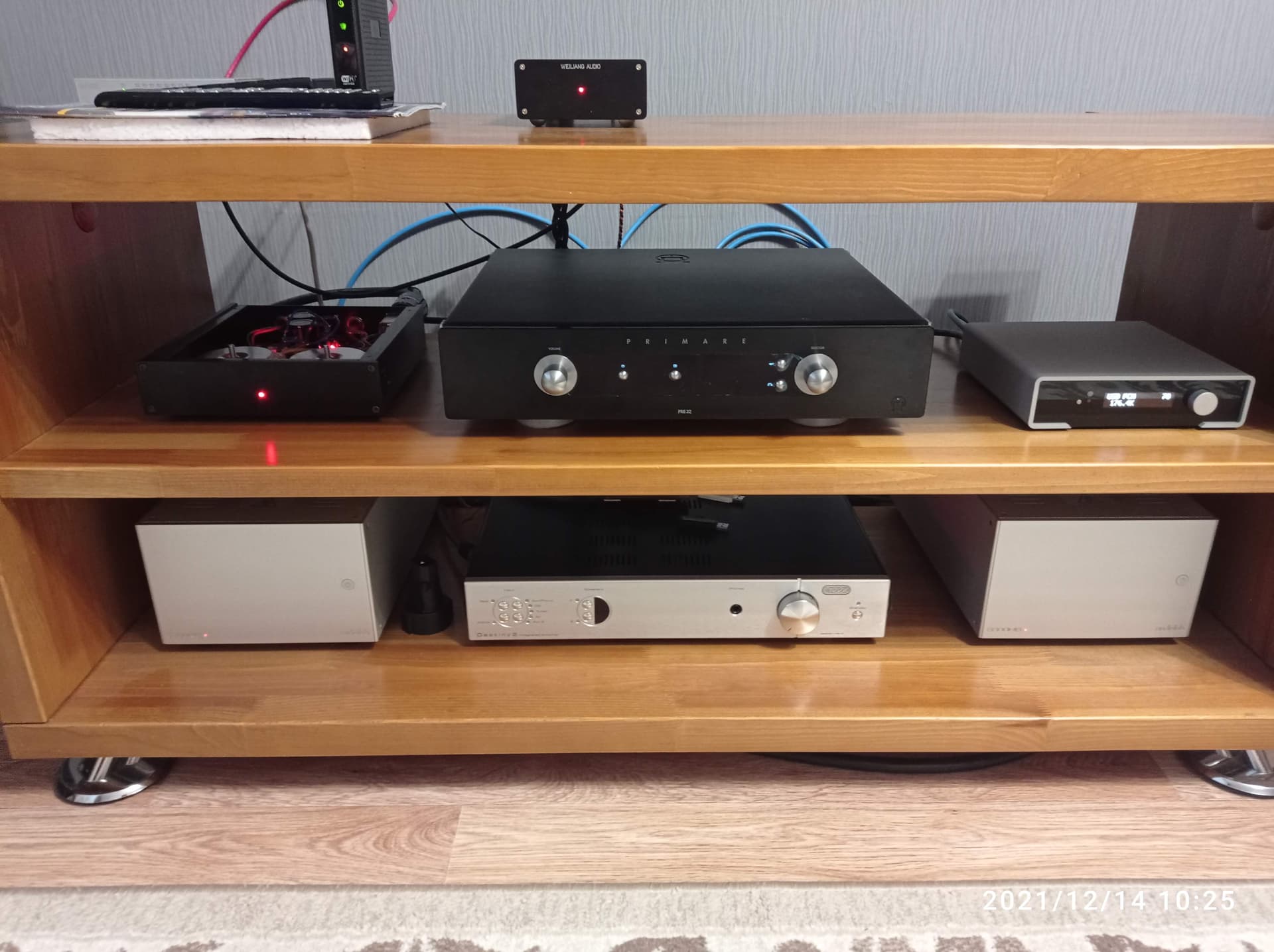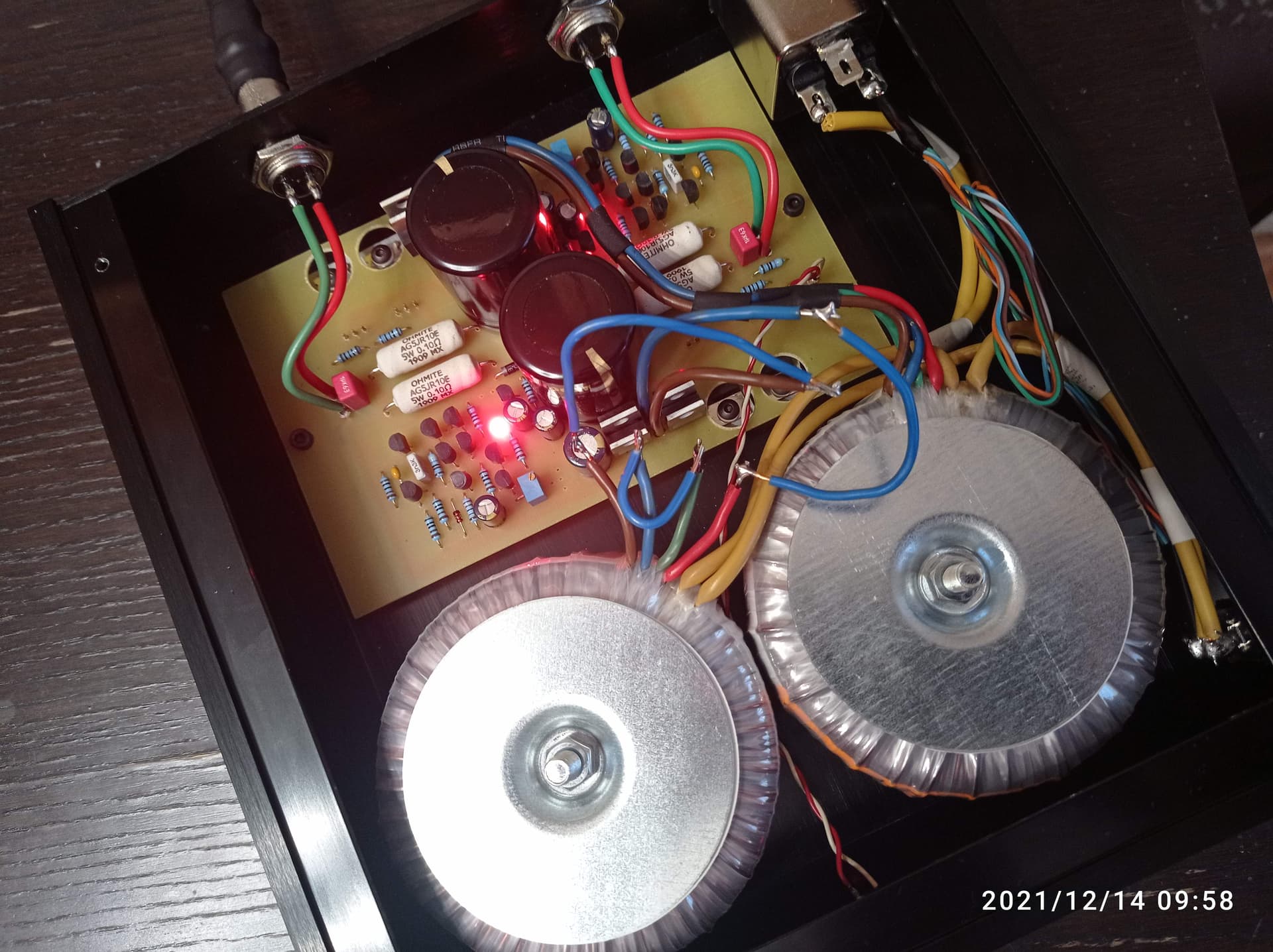 Немного изменил имеющийся в наличии ЛБП от SanderZ, который изначально был выполнен как фактически два блока питания в одном корпусе с двумя трансформаторами Talema по 80VA и с двумя вторичками 10V@4A в каждом. Работал этот блок питания на напряжении 2х5V, от одного канала питался ЦАП NAD D1050 (а он очень прожорлив), а от другого малиношляпа. Вторичные обмотки трансформаторов были включены параллельно для увеличения мощности. Ввиду того, что приехал новый ЦАП M2Tech Young DSD MKIII, требующий питания 15V@2,5А, пришлось немного перекрутить схему ЛБП, а именно переключить вторичные обмотки трансформатора одного из каналов в последовательный режим, тем самым увеличив АС напряжение выхода до 23V, соответственно подстроив выход на 15,2V DC. Затем проверил БП под нагрузкой 8 Ом, ток примерно 1,9А - простояло так полчаса, нагрева не замечено, вони тоже, напряжение под нагрузкой стабильно 15,15V. Подключил к ЦАПу, вроде работает)))