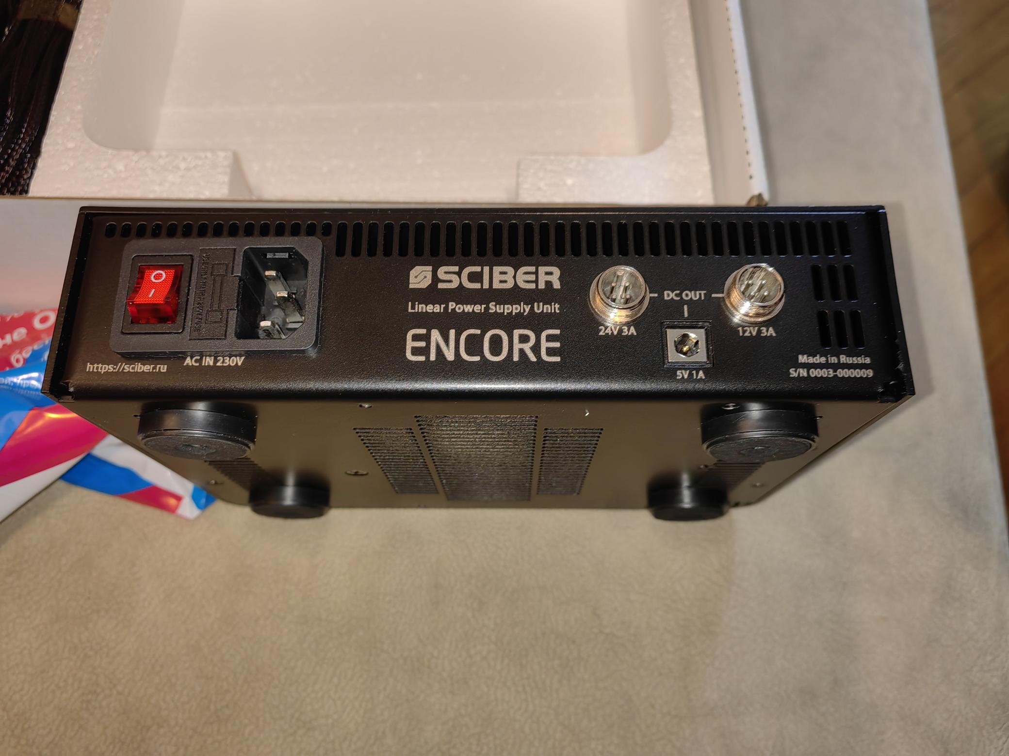 Изначально SCIBER Encore предназначался как качественный малошумящий блок питания для усилителей наушников (прочел где-то на сайте производителя или в документации). Понятно, что везде, где есть акустические тракты с низковольтным питанием любое улучшение питания на звуке будет давать прямой эффект. Тут воткнул и всё сразу слышно. У меня нет низковольтных аналоговых трактов. Всё, что у меня в аналоговом тракте, втыкается непосредственно в 220 вольт.