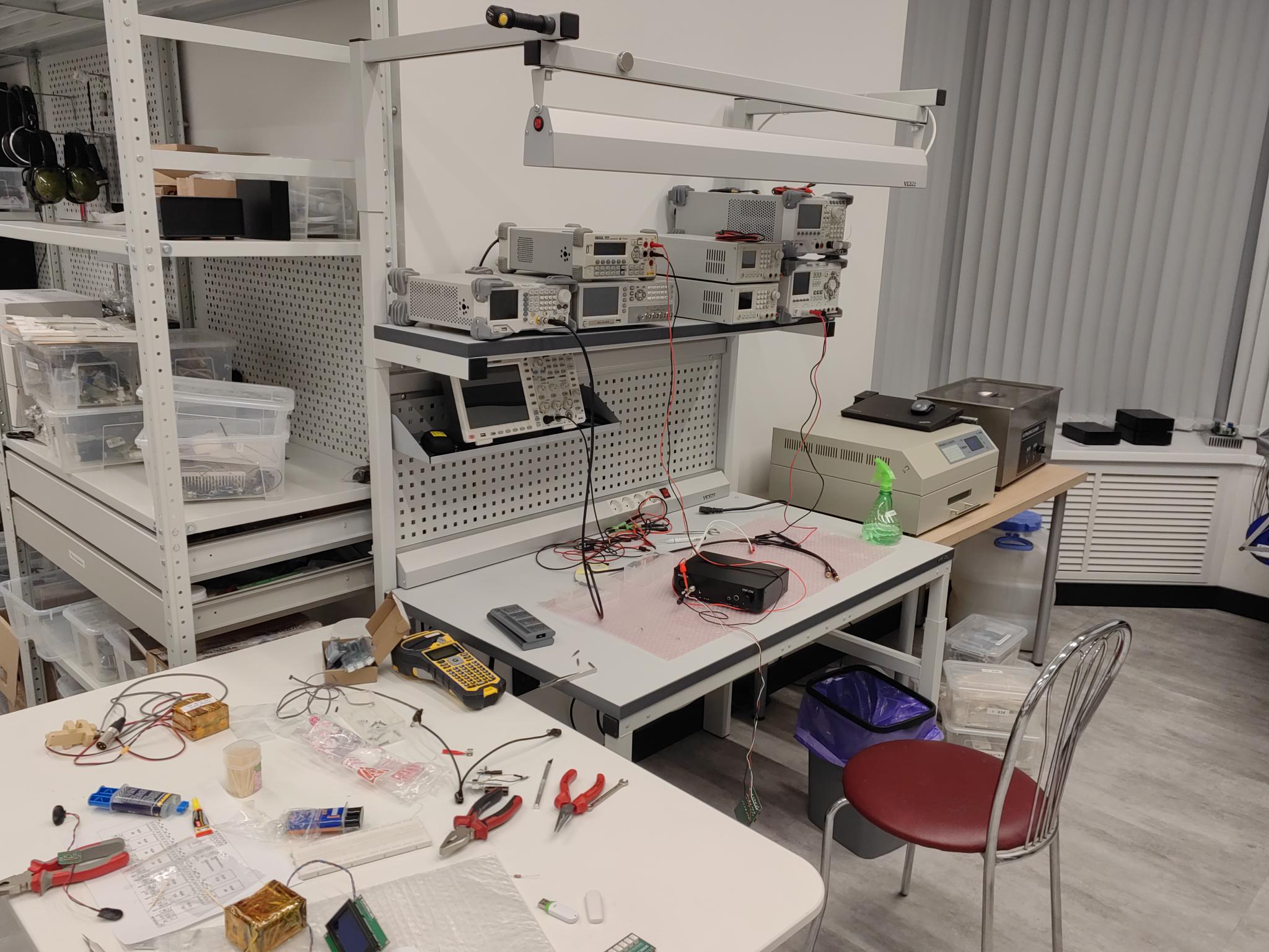 Коллеги смогли совместить в одном помещении и разработку устройств, и целый набор станков и приборов для серийного производства изделий SCIBER. В добавок ко всему тут же находится демонстрационный зал, где можно в специально подготовленной КДП послушать как звучат изделия в их лучшем виде.