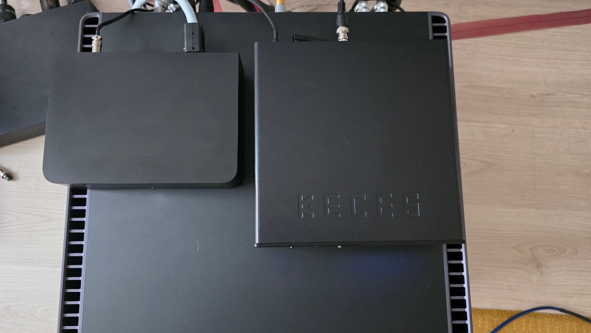 Когда получаешь новое звуковое устройство, часто хочется найти возможность в нём что-то еще улучшить. Наиболее стандартный вариант – улучшение проводов и предохранителя. Мои стандартные DC провода здесь оказались бесполезны, так как они все были на два провода, а не на четыре, да и оконечные разъемы были GX16-2, что точно нельзя было прикрутить к этому блоку питания. Учитывая, что с неправильным проводом DC блок питания может просто перегореть, я не стал бы экспериментировать ни сейчас, ни потом. Штатный кабель сделан с учетом всех нюансов устройства и дает прекрасный звук, лучше не рисковать и не беспокоиться.