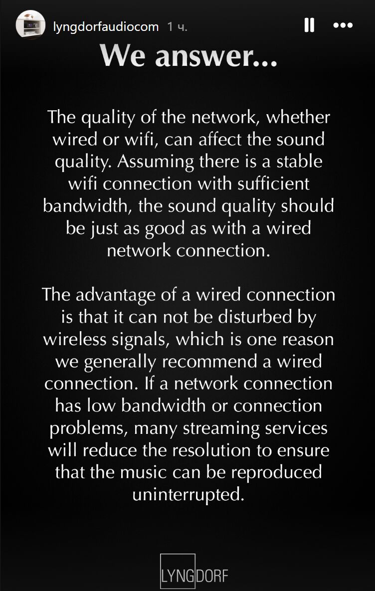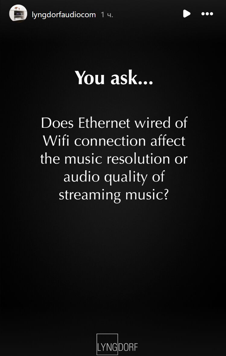 Тут Lyngdorf в одной запрещённой соцсети опубликовал ответ на вопрос, влияет ли WI-FI-соединение на качество звука:
