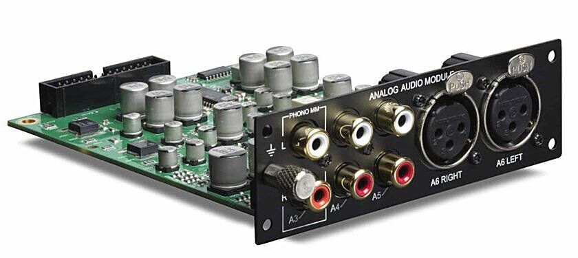 Поддерживает высококачественные аналоговые источники и включает специальный вход с коррекцией RIAA. Четыре аналоговых входа: 1 фоно (RIAA, MM), 2 небалансных RCA и 1 балансный XLR. Чувствительность каждого входа можно увеличить до 24 дБ, первые 6 дБ — через позолоченные реле для оптимальной работы АЦП.