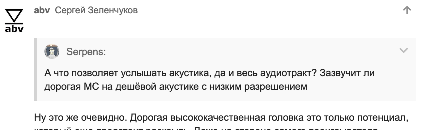 С “дорогой МС” вопрос начался и в кавычки в своем ответе, заметь, я и взял это словосочетание, чтобы ветка не терялась. Или ты хотел, чтобы я додумал, что в твоем ответе на вопрос про “дорогую МС” твое “Дорогая высококачественная головка” это не факт еще, что МС?..