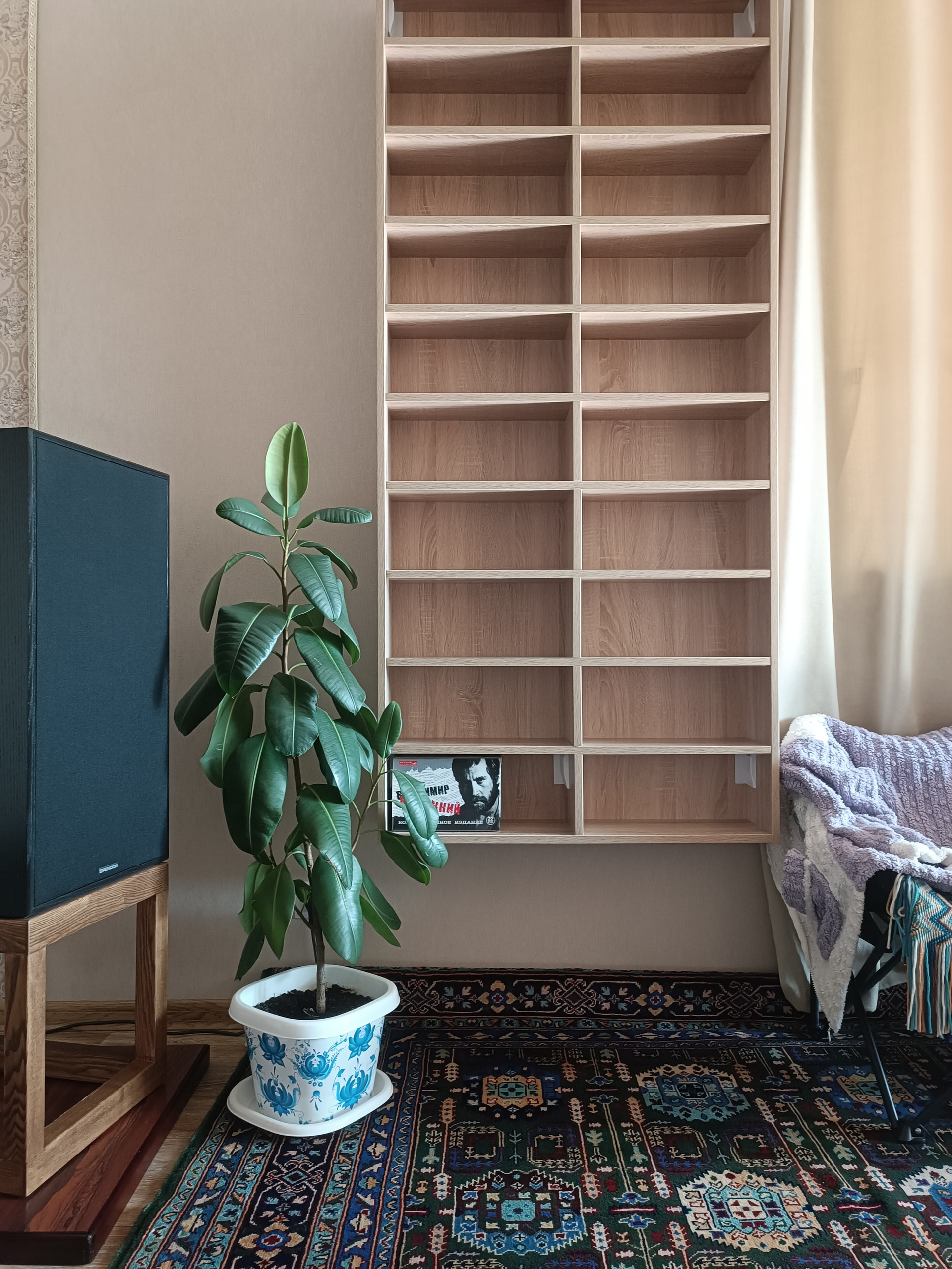 Главное не забывать учитывать вес компактов, которые будут храниться на подвесных полках.