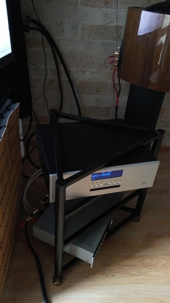 У меня ДК и стерео в одной стойке. Еще в начале формирования системы после очень долгих и мучительных раздумий и поисков была куплена Atacama AV и две дополнительные полки к ней. На рынке крайне мало стоек, в которые можно поместить тяжелые и высокие компоненты с глубиной курпуса 50 сантиметров, и которые стоят не как мотоцикл…