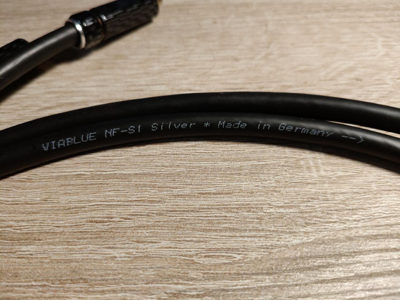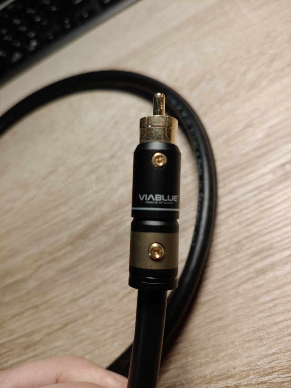 межблочные Viablue NF-S1. Очень хороший за свои деньги ровный и нейтральный межблочник. Есть два одинаковых метровых комплекта. Отличаются только разьемами RCA - TTAF (Турция) либо родные фирменные VIablue. Разьемы недешевые тоже (теллуриевая медь). Проводники - медь OFC, два серебренных экрана и доп экранирование из фольги. Диэлектрик - полиэтилен.