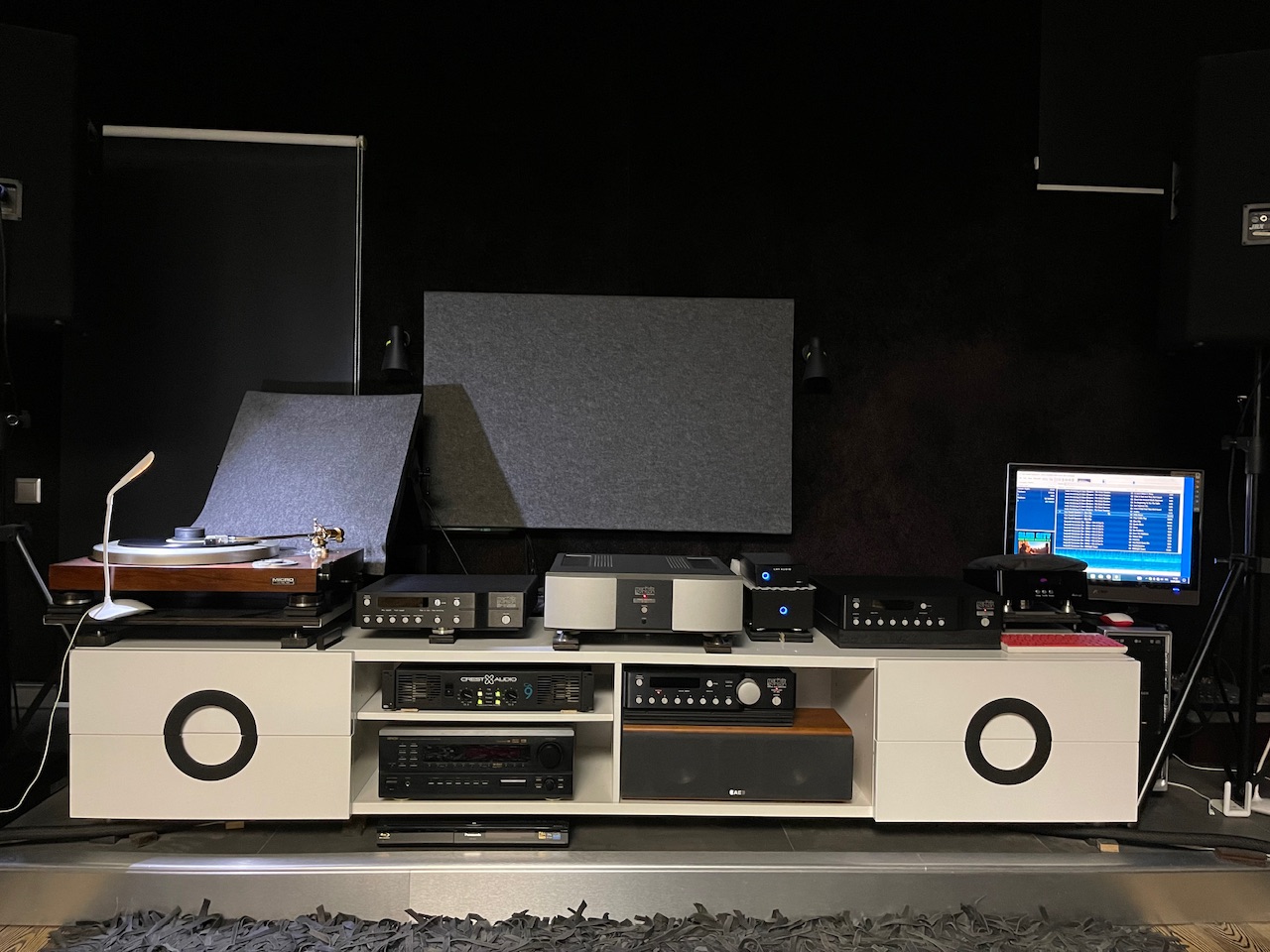 Далее по AN-Sogon в предусилитель Mark Levinson N38S, УМ ML N431 на СЧ-ВЧ и УМ Crest CA-9 на НЧ полосы АС Kef reference 207, ещё используется супертвиттер на базе Focal berillium и сабвуфер B&W asw-855.