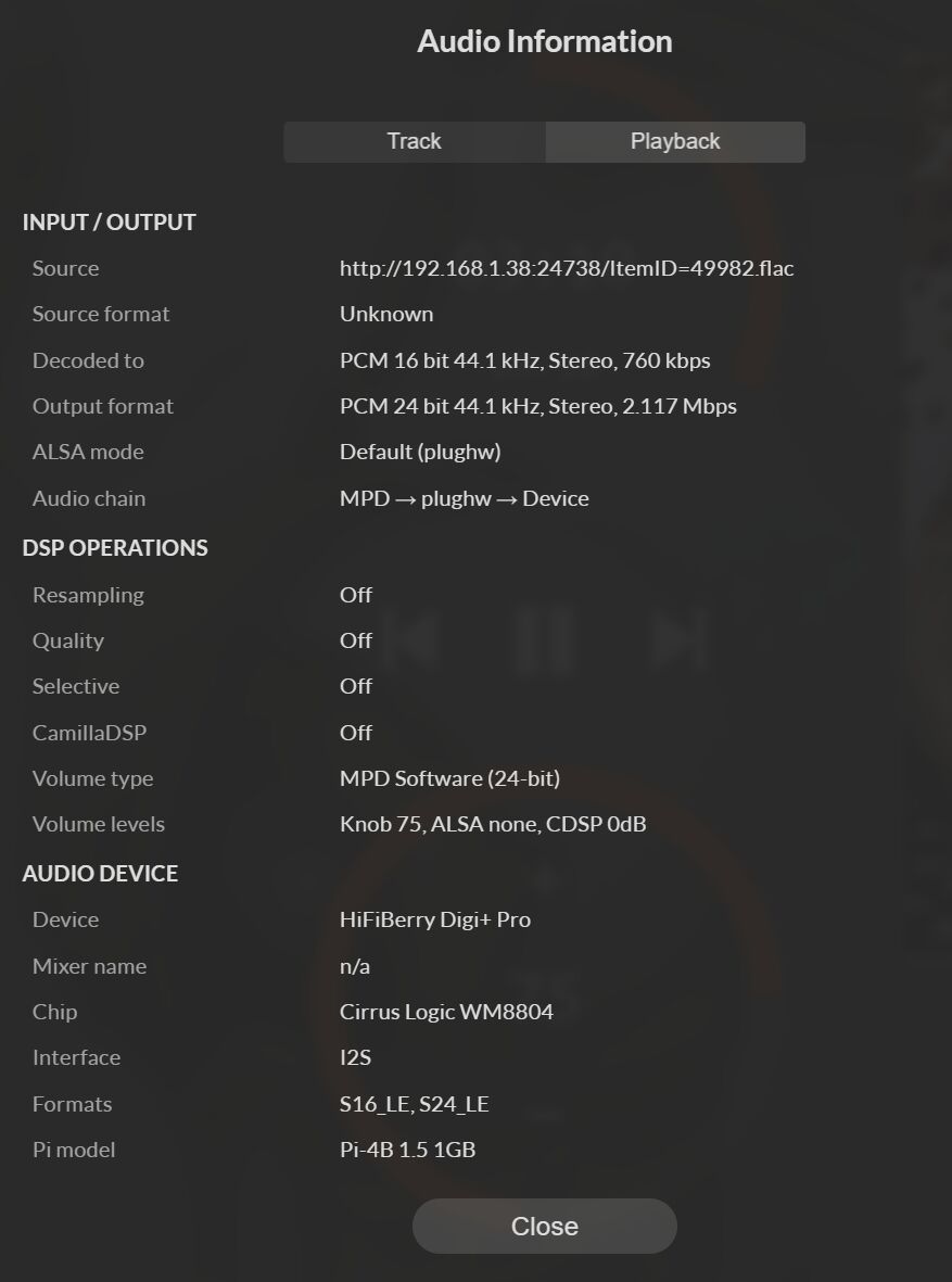 У вас, я так понимаю, ЦАП по USB подключен, без шляп? Чем питаете малинку?