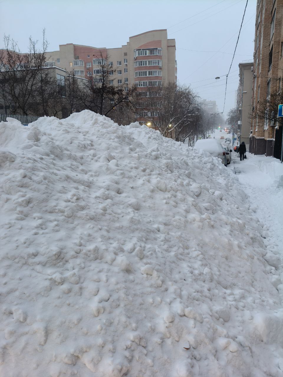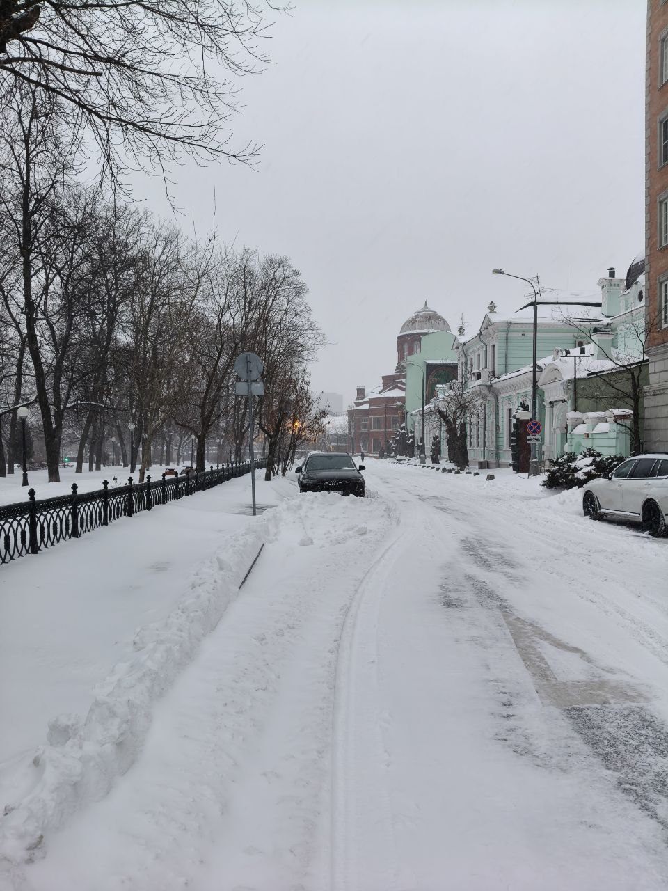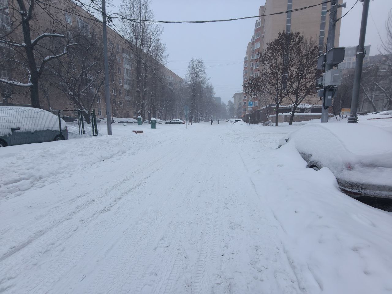 На местах где были тротуары иногда (не всегда) есть слабо заметные тропинки, поэтому в основном пришлось гулять по проезжей части. Благо, машины тоже в основном остались сегодня на своих местах и встречаются на ходу не так часто.