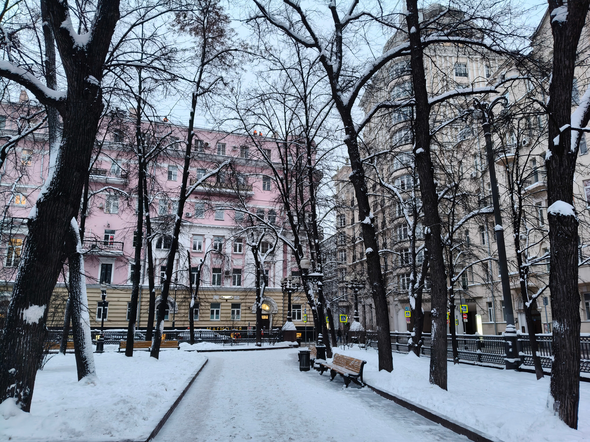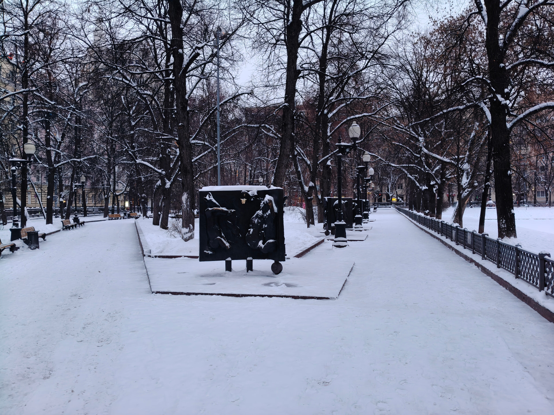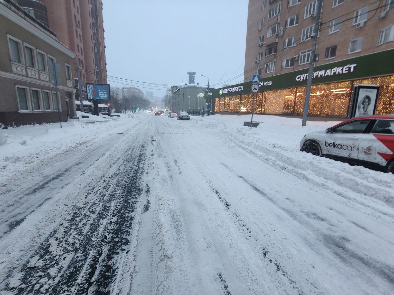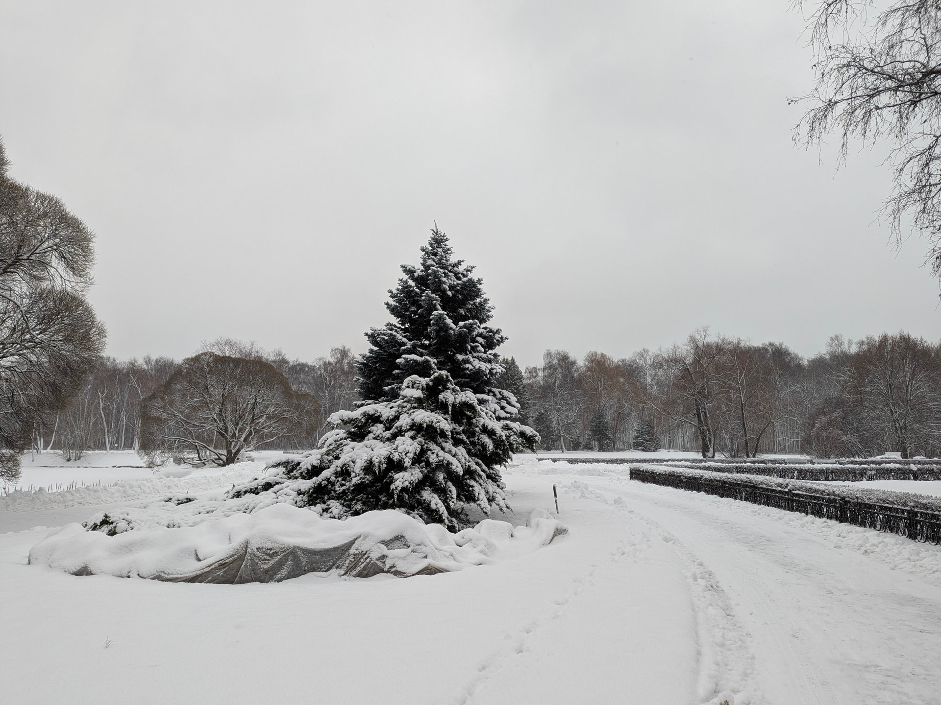 На местах где были тротуары иногда (не всегда) есть слабо заметные тропинки, поэтому в основном пришлось гулять по проезжей части. Благо, машины тоже в основном остались сегодня на своих местах и встречаются на ходу не так часто.